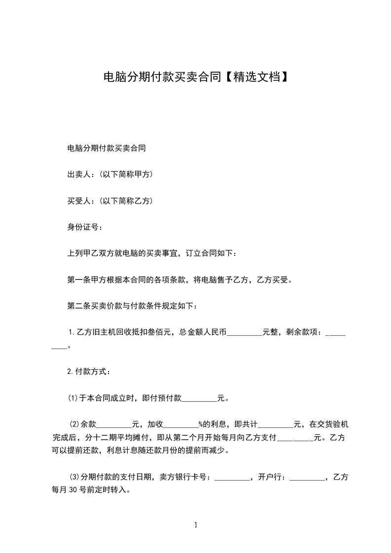 (3)分期付款的支付日期,卖方银行卡号:_________,开户行:_________,乙方每月30号前定时转入。