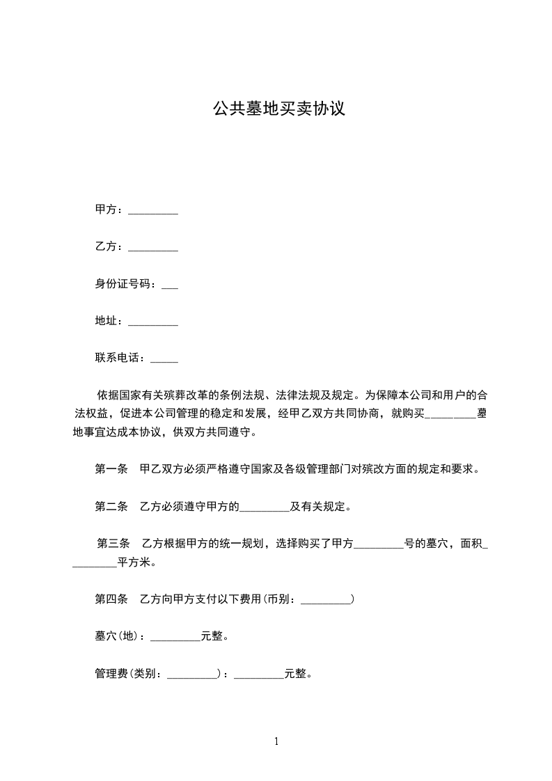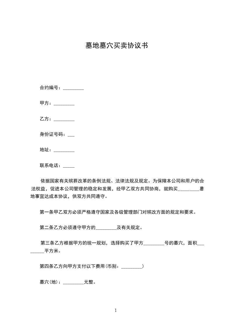 依据国家有关殡葬改革的条例法规、法律法规及规定。为保障本公司和用户的合法权益,促进本公司管理的稳定和发展,经甲乙双方共同协商,就购买_________墓地事宜达成本协议,供双方共同遵守。