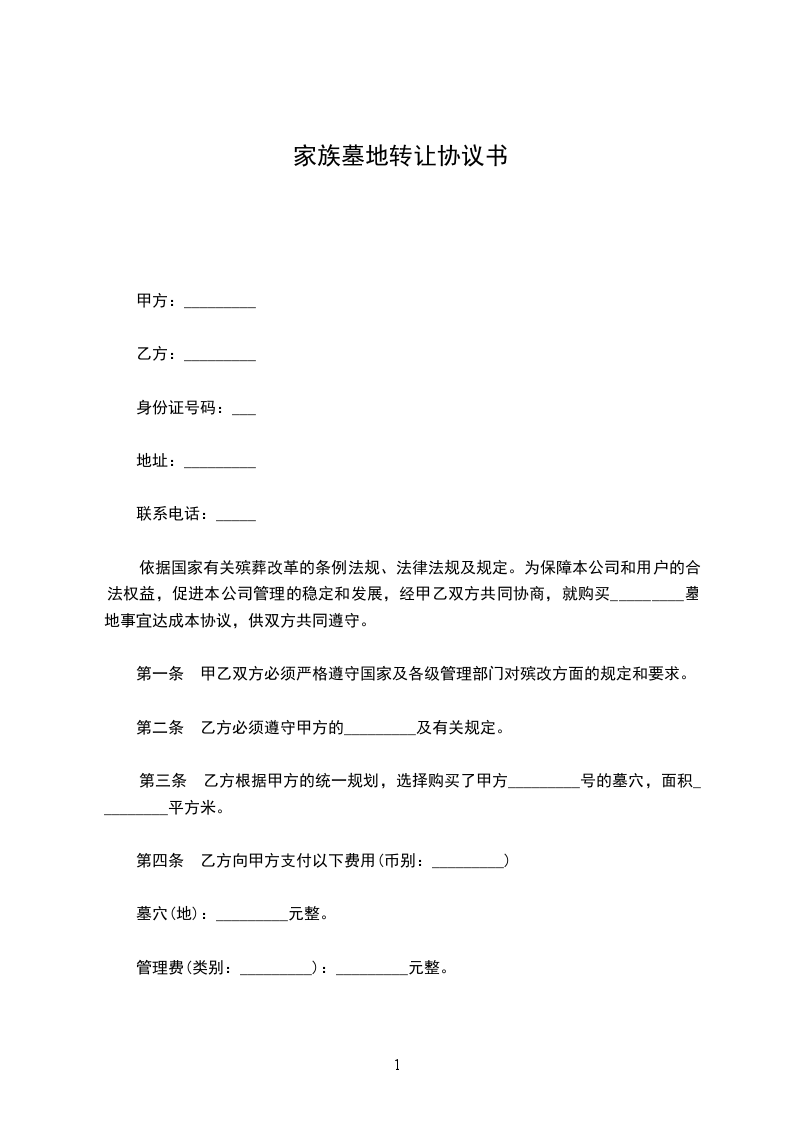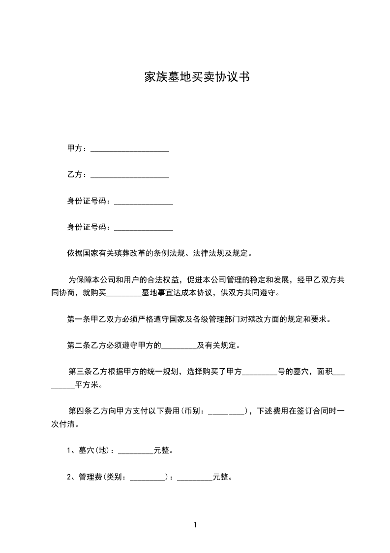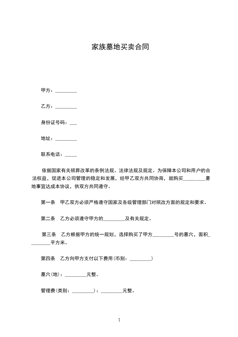第一条 甲乙双方必须严格遵守国家及各级管理部门对殡改方面的规定和要求。