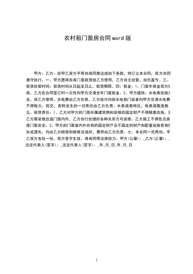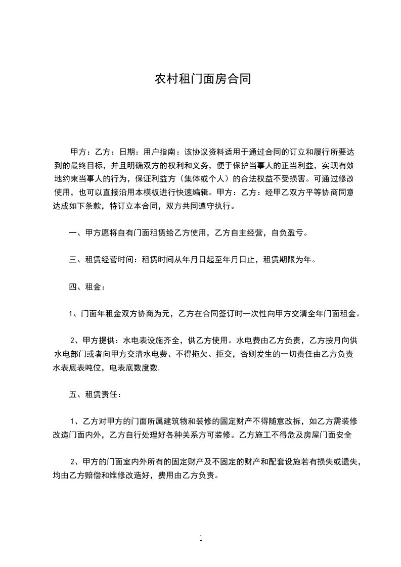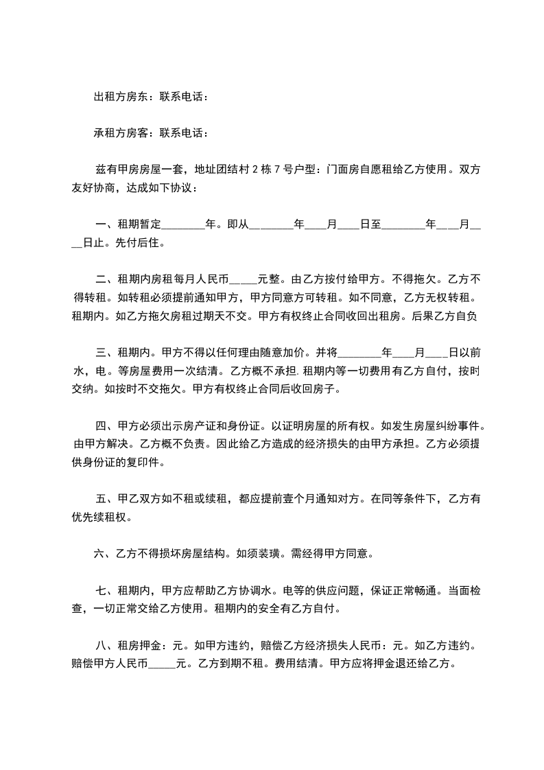 兹有甲房房屋一套,地址团结村2栋7号户型:门面房自愿租给乙方使用。双方友好协商,达成如下协议: