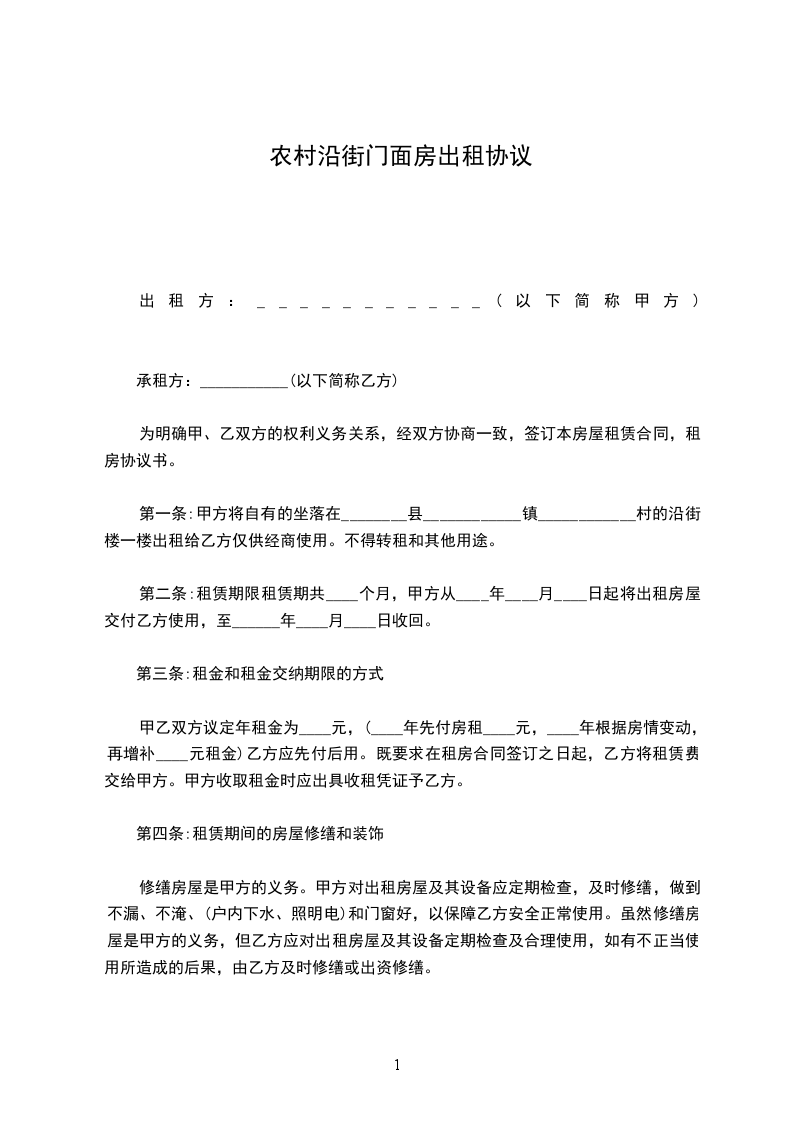 一、租期暂定________年。即从________年____月____日至________年____月____日止。先付后住。