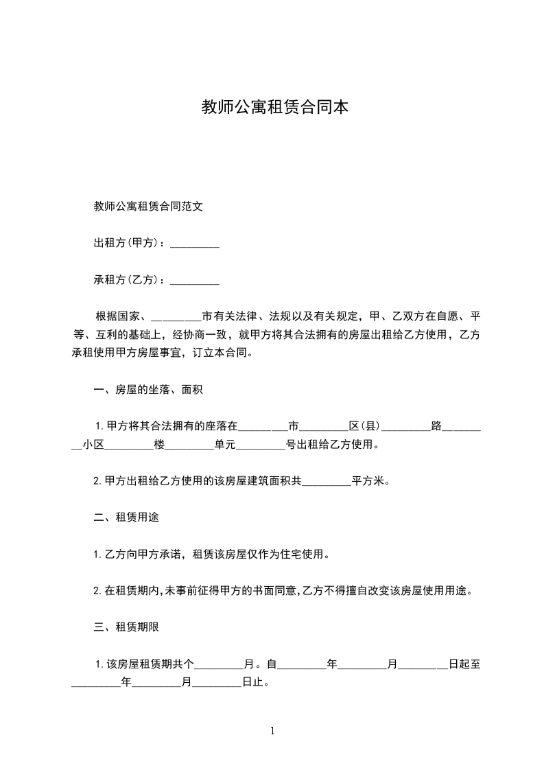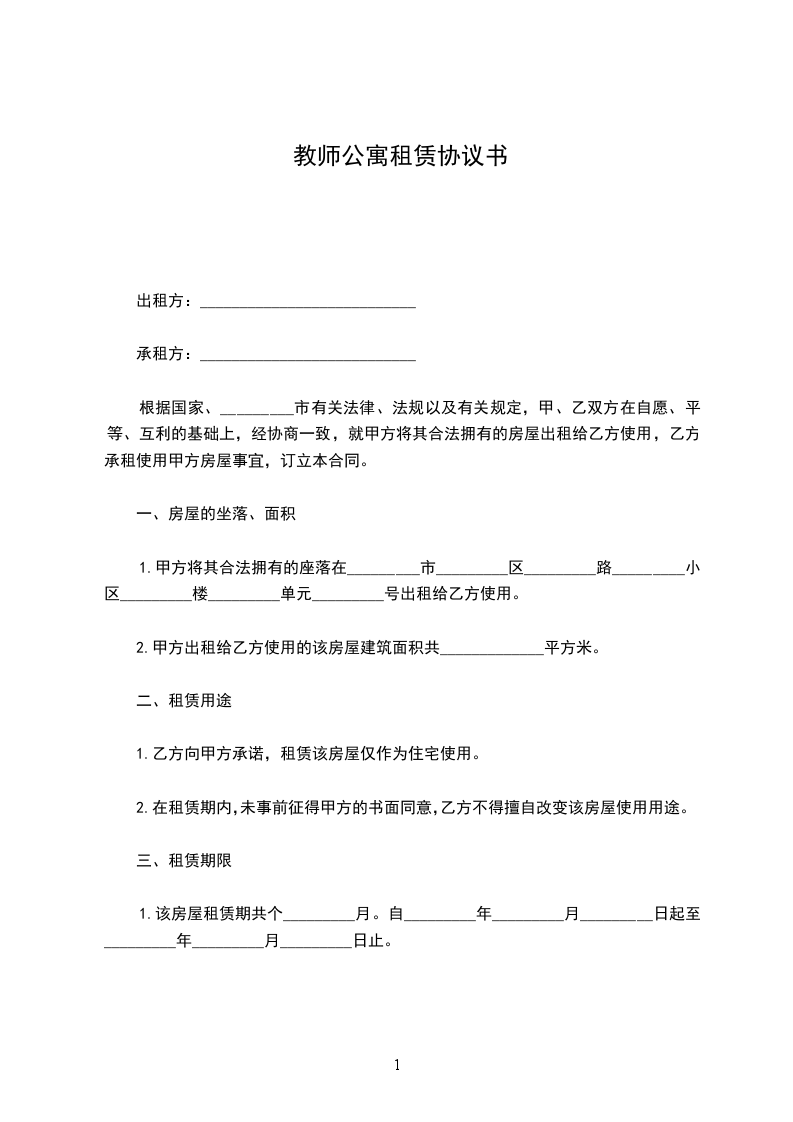 1.甲方将其合法拥有的座落在_________市_________区_________路_________小区_________楼_________单元_________号出租给乙方使用。