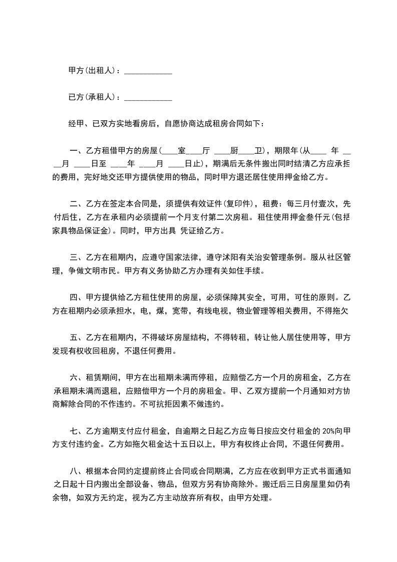 1.该房屋租赁期共个_________月。自_________年_________月_________日起至_________年_________月_________日止。