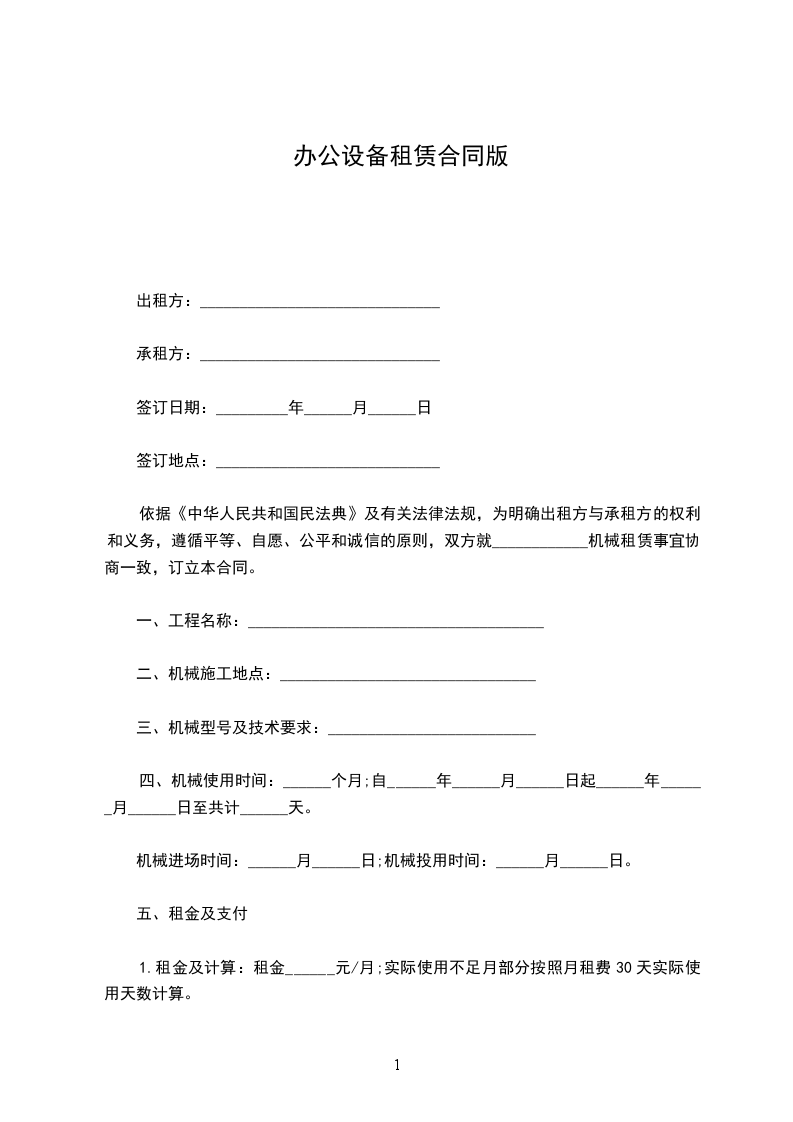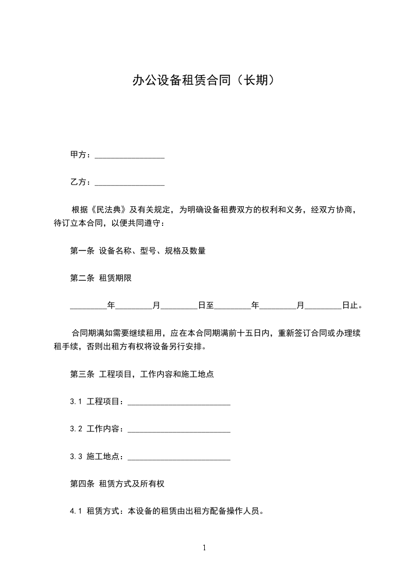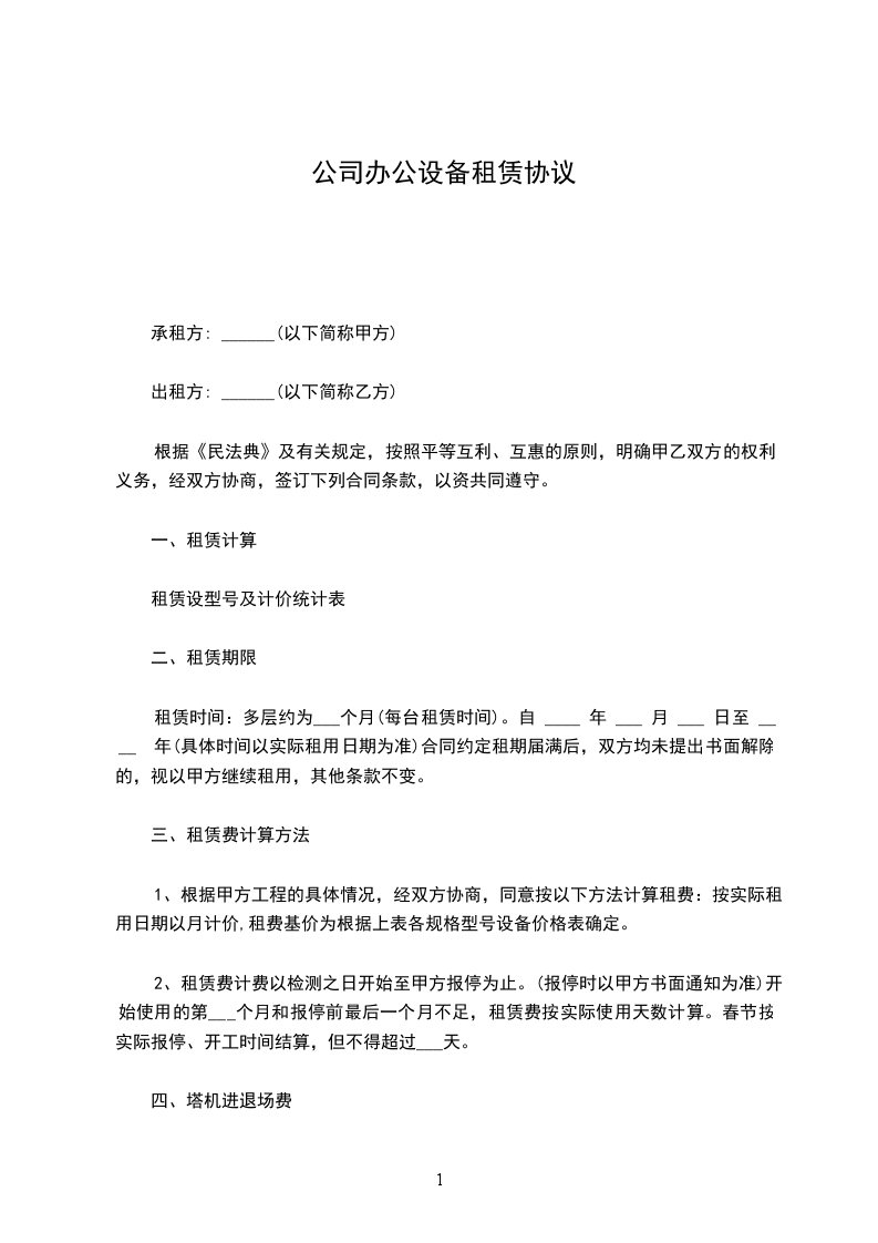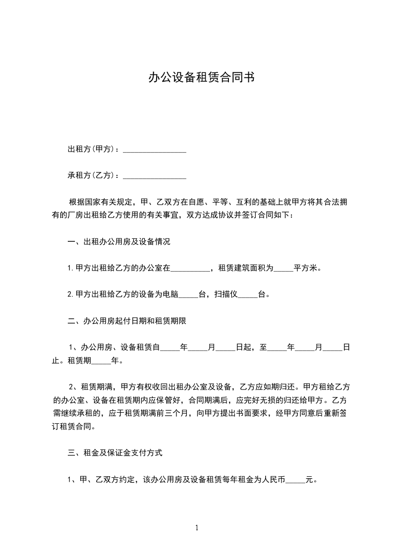 甲方向乙方租用办公设备一批,有关事项经甲乙双方协商后达成如下协议: