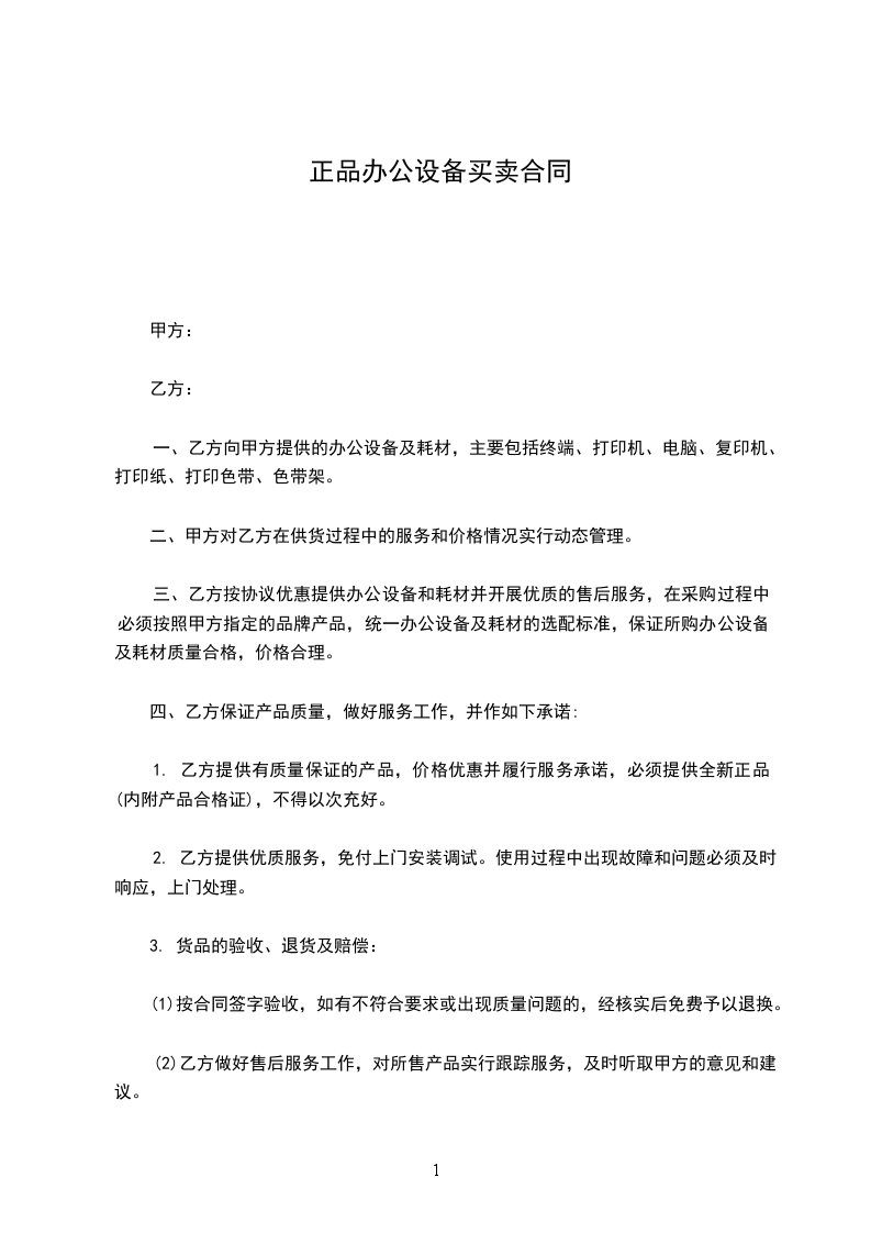 ②在合同期内,如办公设备发生故障,可随时通知乙方,乙方最迟不超过第二天上门维修或换样机。