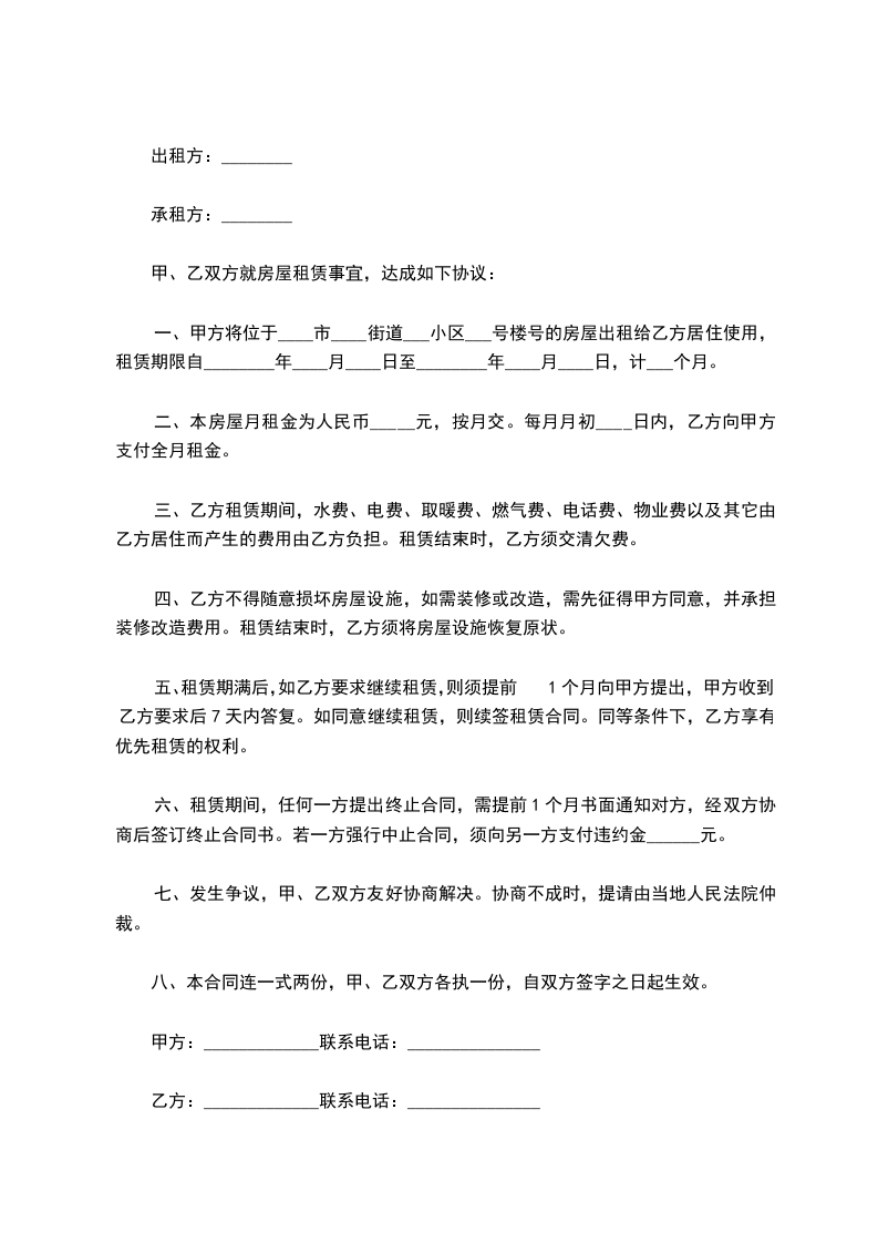 8、本合同如有未尽事宜,须经出租、承租双方协商同意修订。