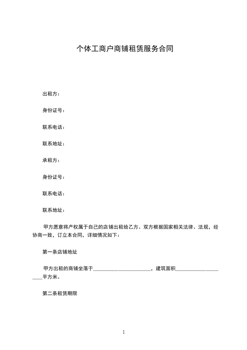 甲方出租的商铺坐落于_______________________,建筑面积_____________________平方米。