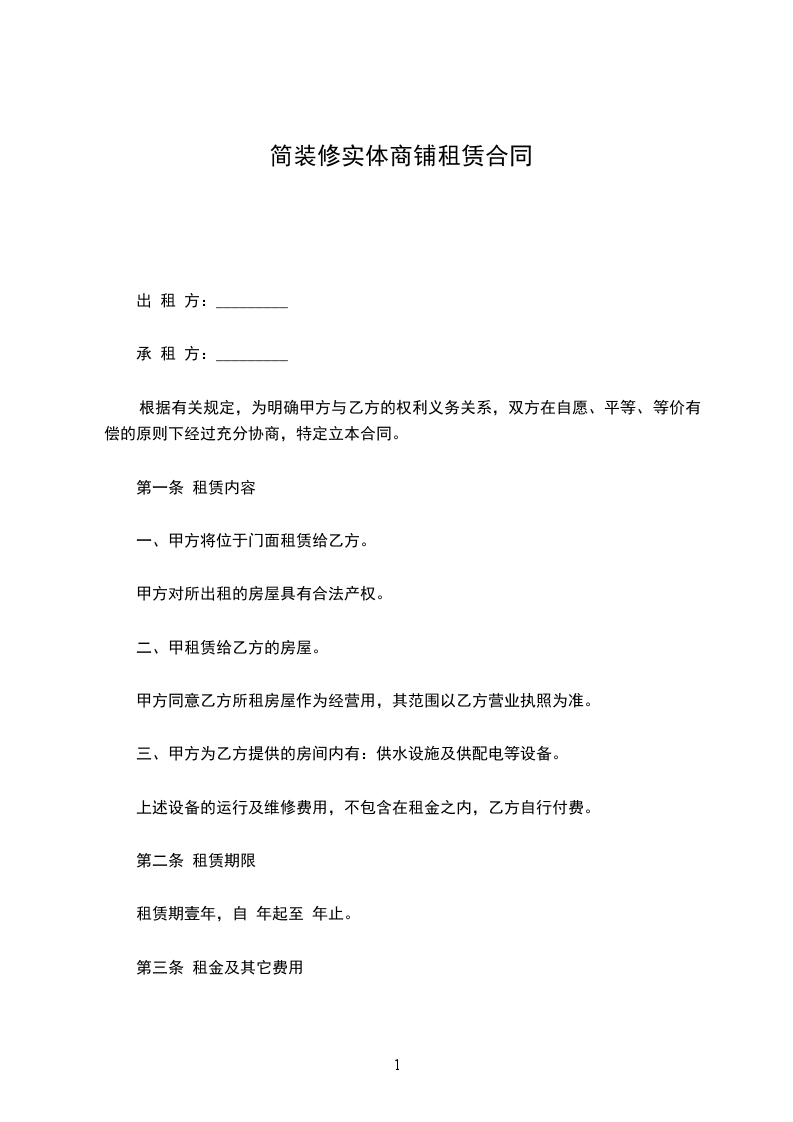 甲方愿意将产权属于自己的店铺出租给乙方。双方根据国家相关法律、法规,经协商一致,订立本合同,详细情况如下: