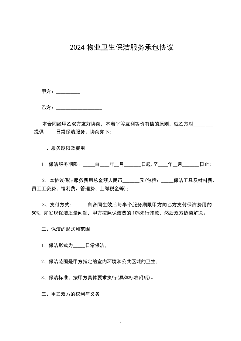 1、保洁服务期限:_______________自____年__月__日起,至 ____年__月__日止;