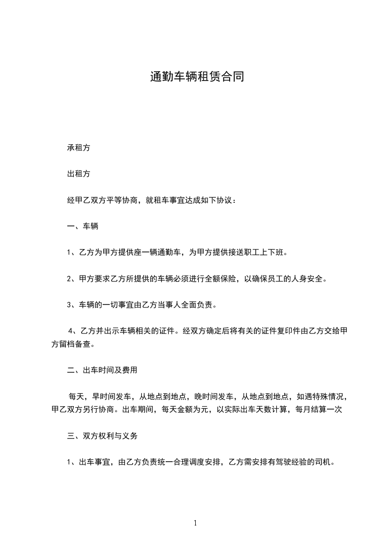 1、乙方为甲方提供座一辆通勤车,为甲方提供接送职工上下班。