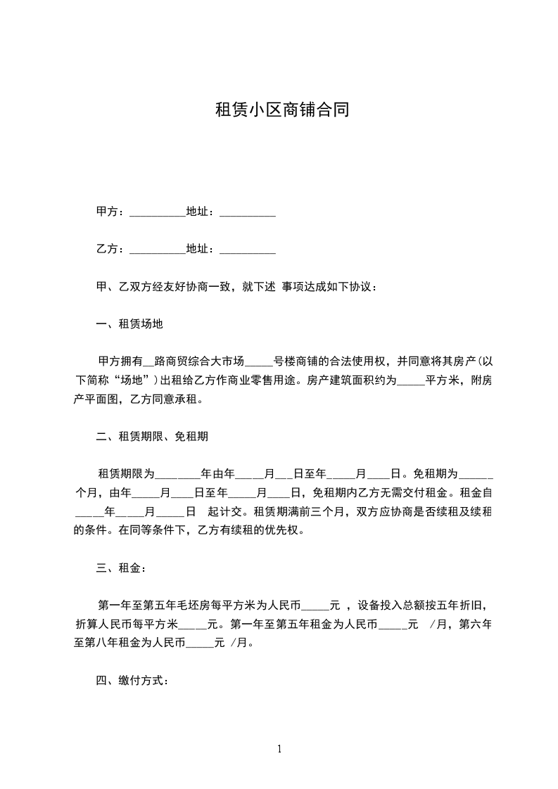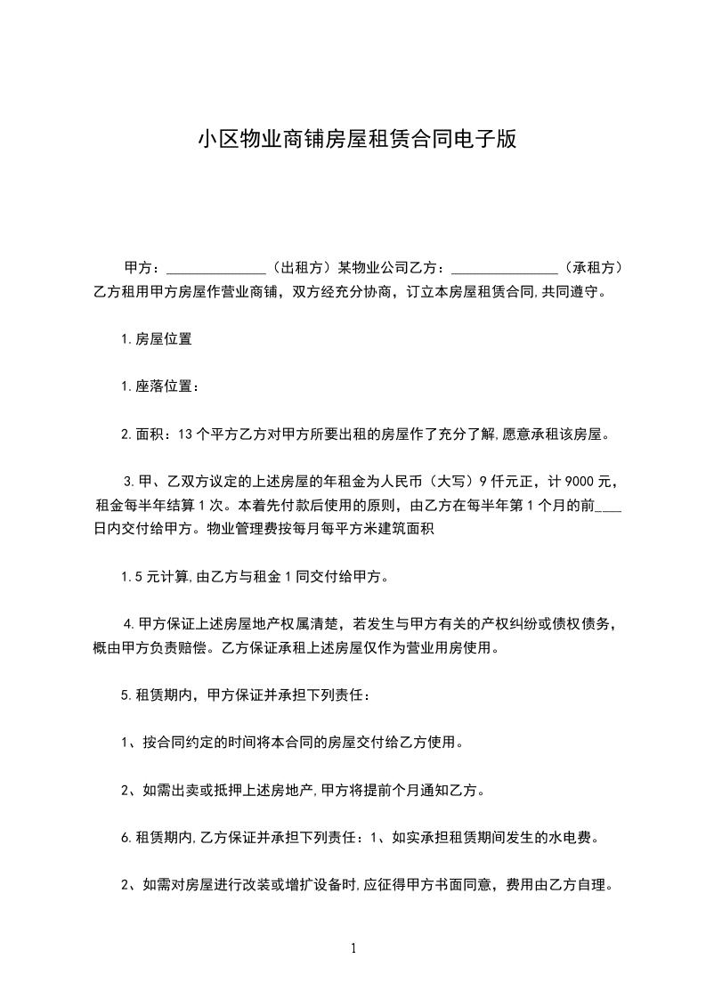5、乙方应向甲方支付保证金人民币为壹仟元,乙方期满后退回。