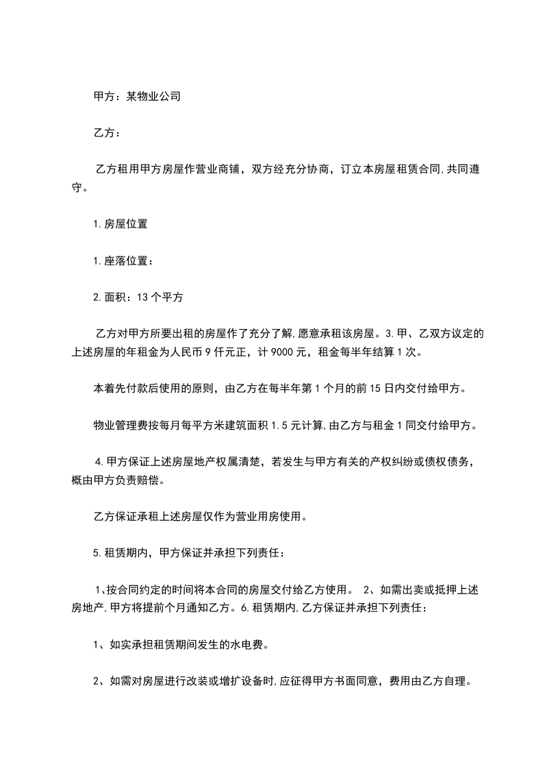 乙方租用甲方房屋作营业商铺,双方经充分协商,订立本房屋租赁合同,共同遵守。