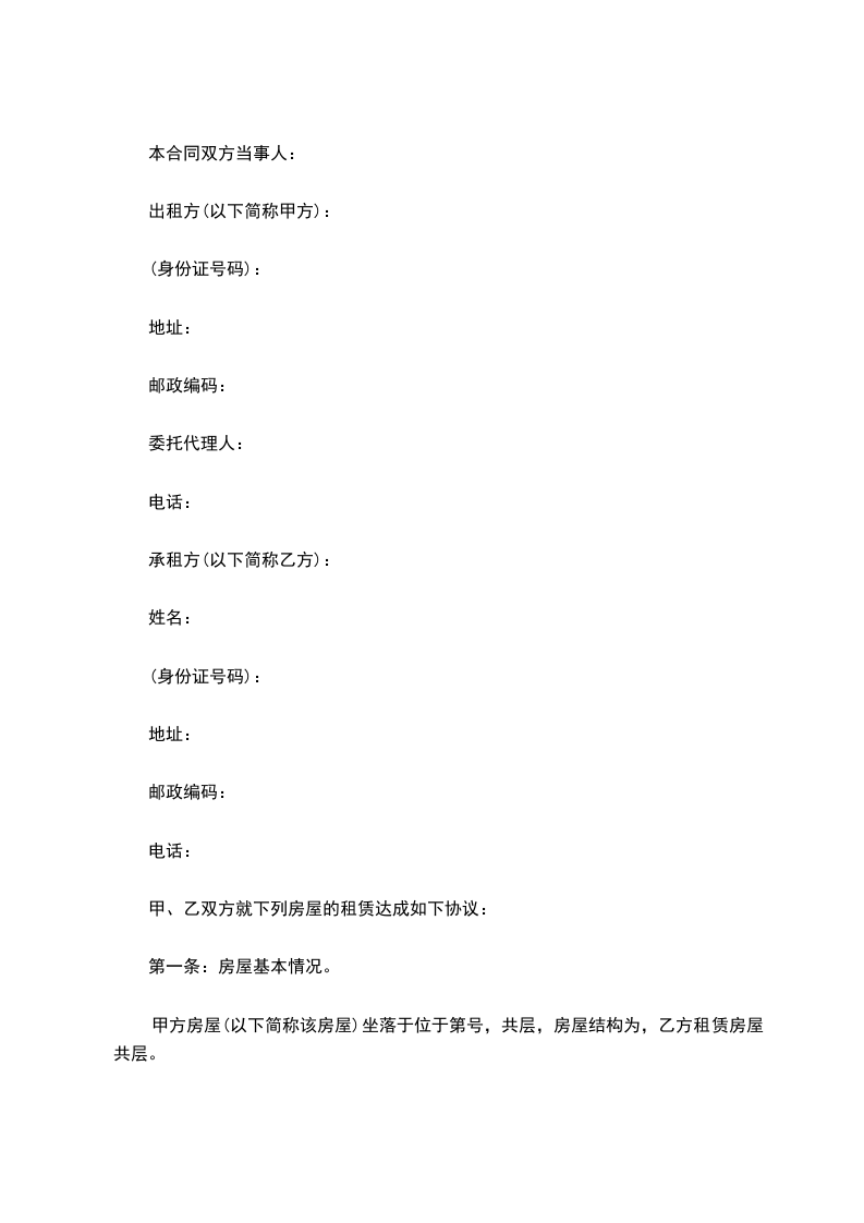 (2)房屋租期为________年,日期____年____月____日至____年____月____日止合同终止。