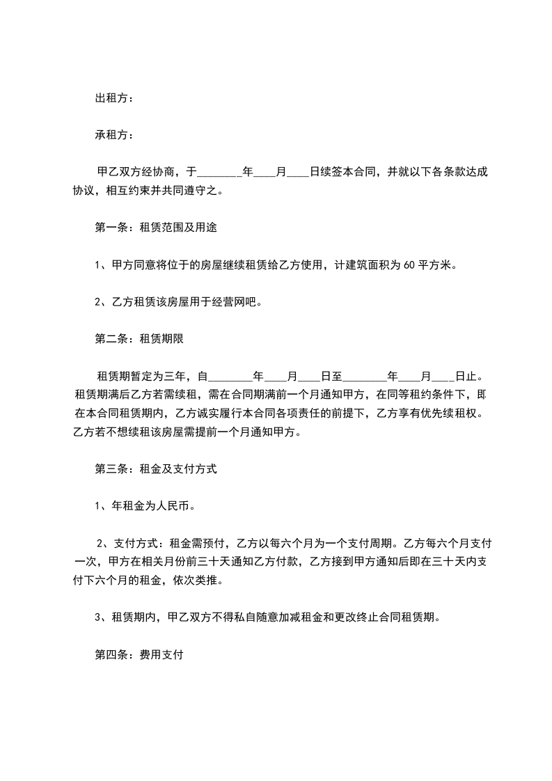 (9)在二楼经营网吧,为了正常的用电,根据实际的用电量,经双方议定,本楼房屋用电必须增伏更换变压器材,其费用手续器材由乙方自行办理承担(注:合同终止变压器和外线按增量后的原有状态交于甲方,无权搬迁和撒迁)但在合同期内水电费的价格按电力局的收费标准计算。