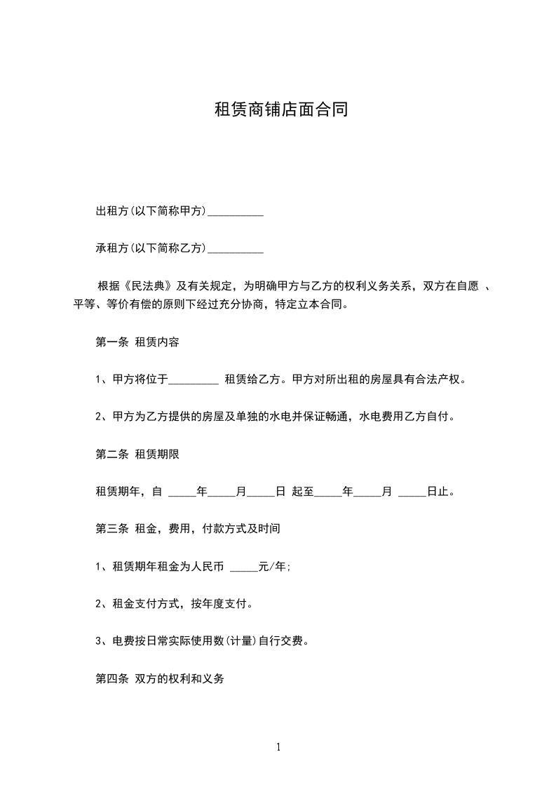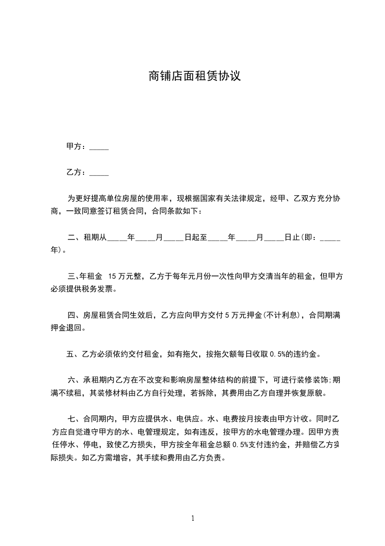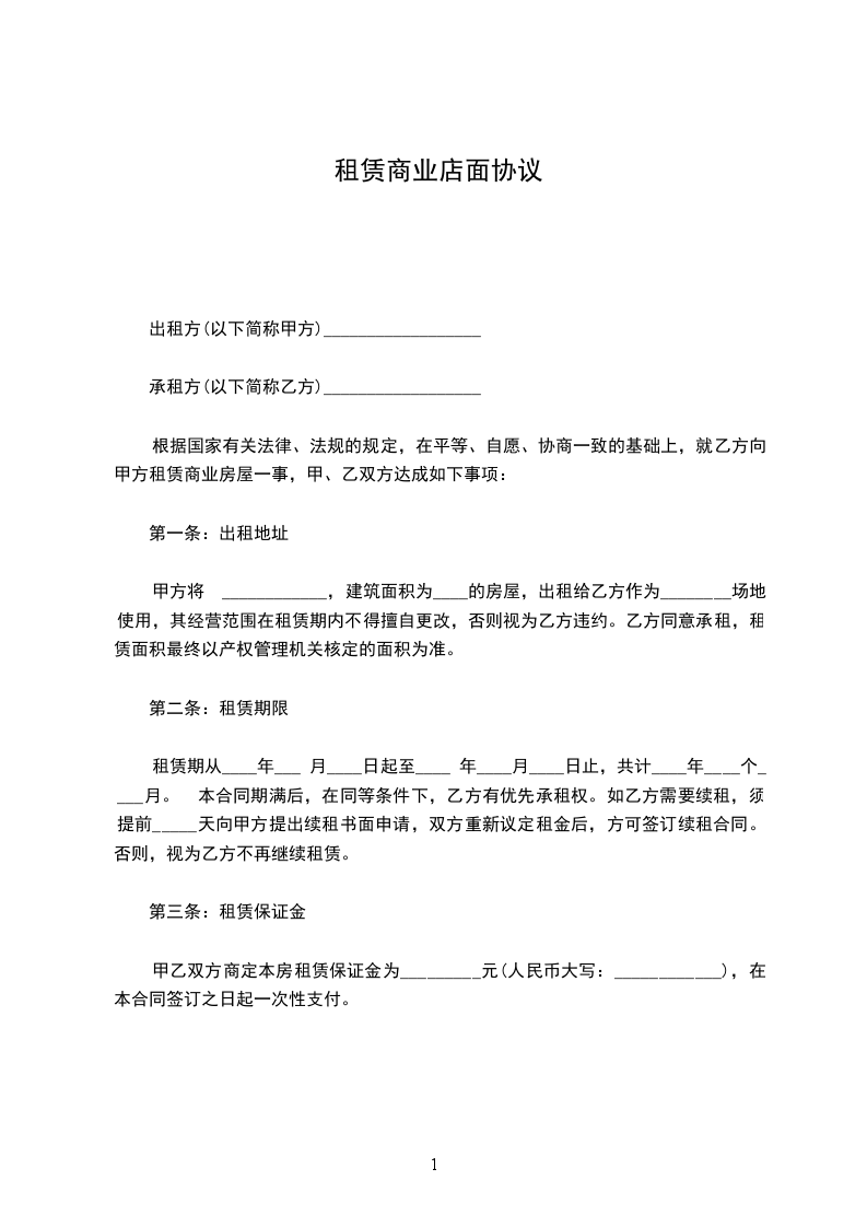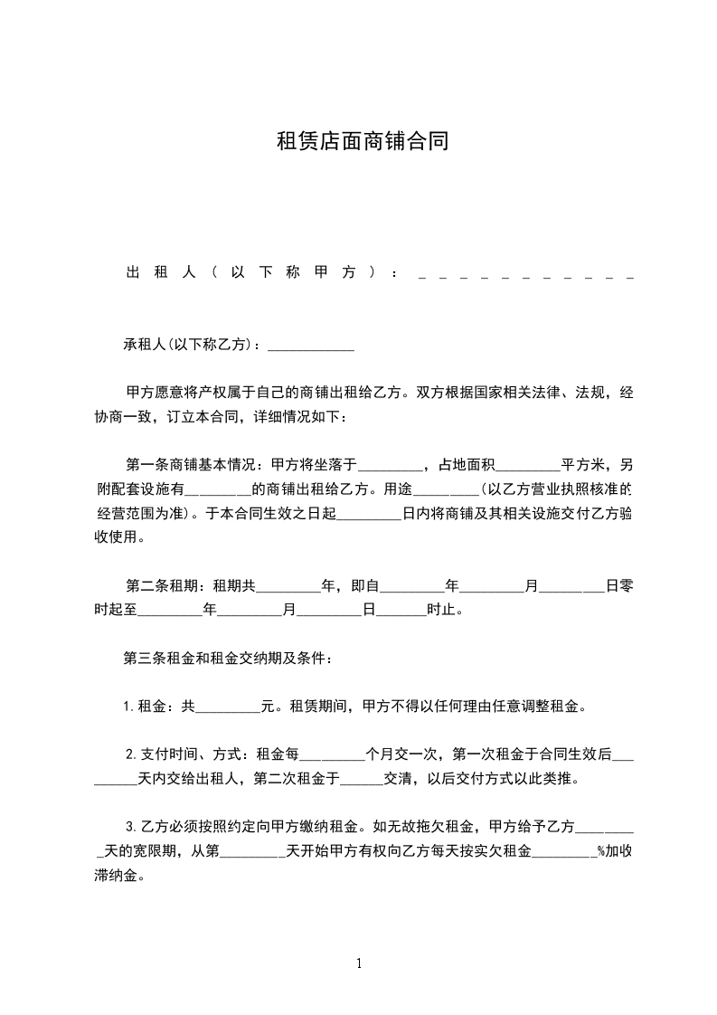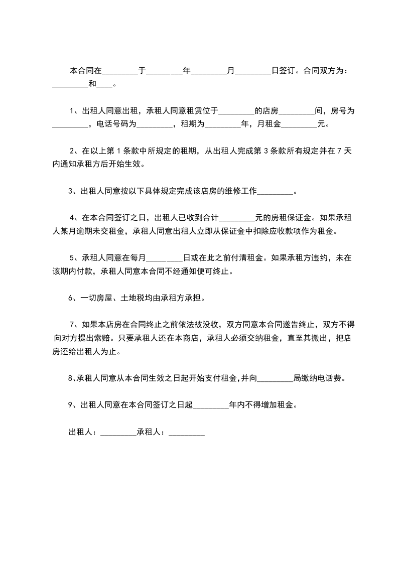 1、出租人同意出租,承租人同意租赁位于_________的店房_________间,房号为_________,电话号码为_________,租期为_________年,月租金_________元。