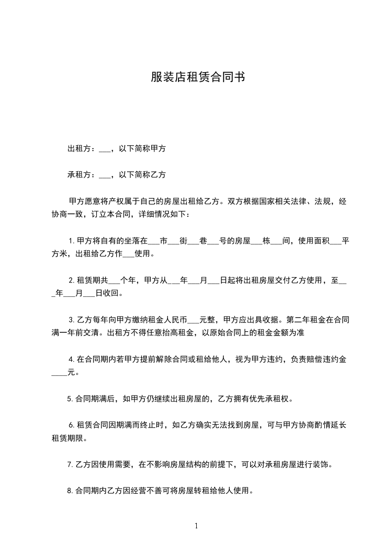 8.合同期内乙方因经营不善可将房屋转租给他人使用。