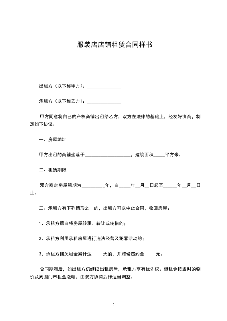 4.在合同期内若甲方提前解除合同或租给他人,视为甲方违约,负责赔偿违约金____元。