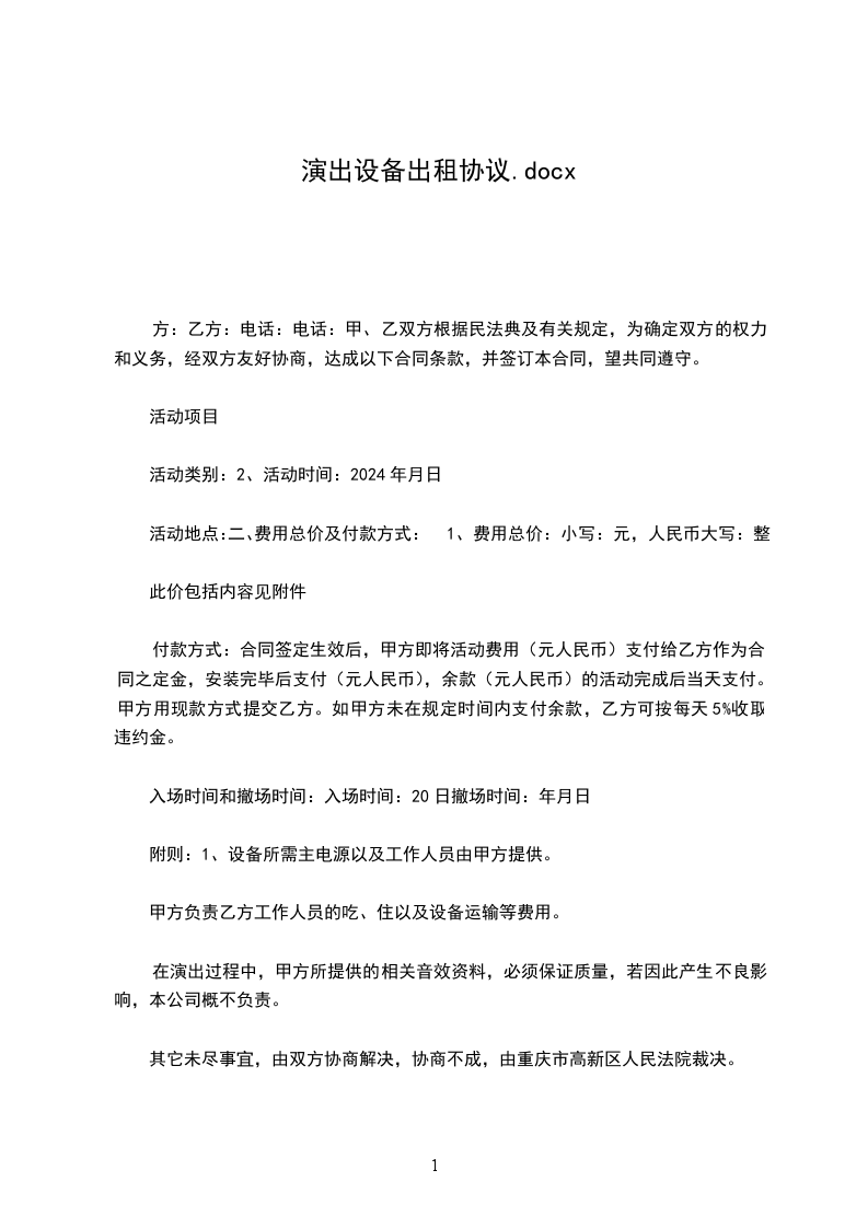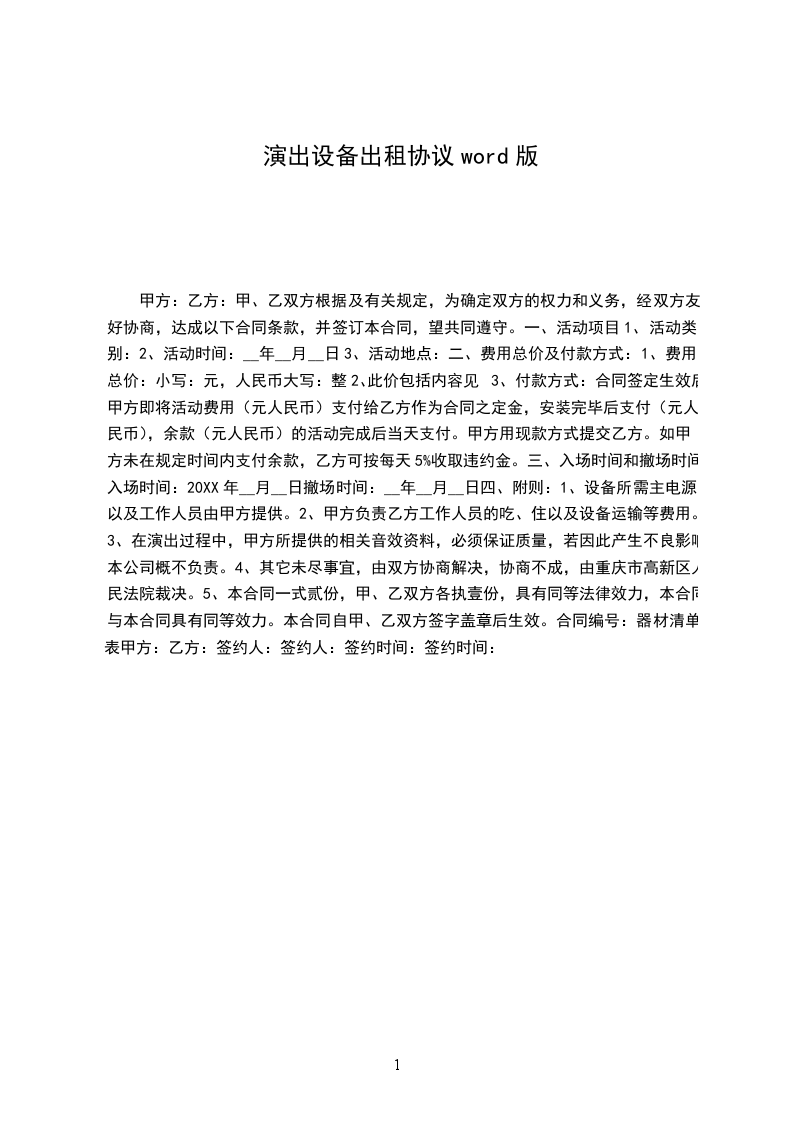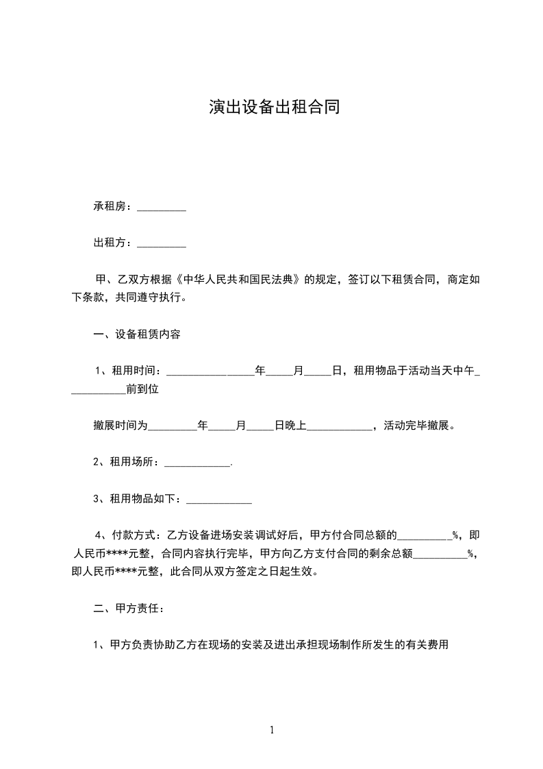 1、租用时间:________________年_____月_____日,租用物品于活动当天中午___________前到位