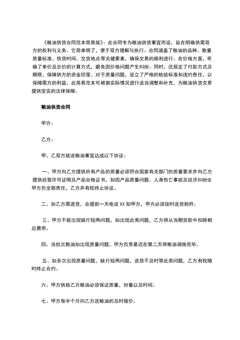 粮油供货合同范本2