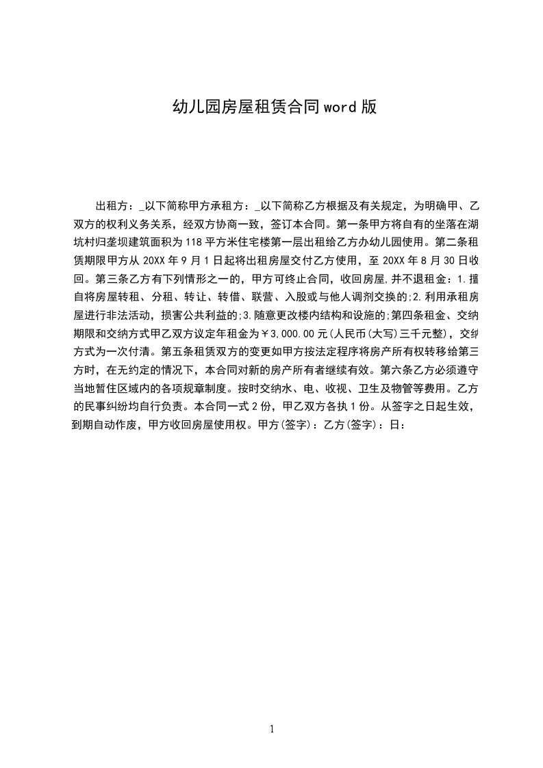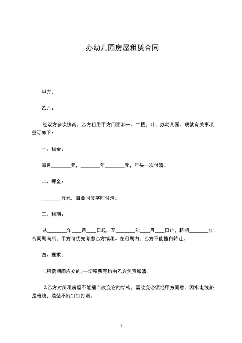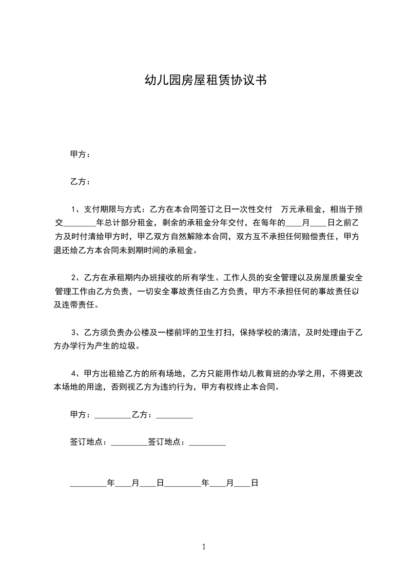 4、甲方出租给乙方的所有场地,乙方只能用作幼儿教育班的办学之用,不得更改本场地的用途,否则视乙方为违约行为,甲方有权终止本合同。