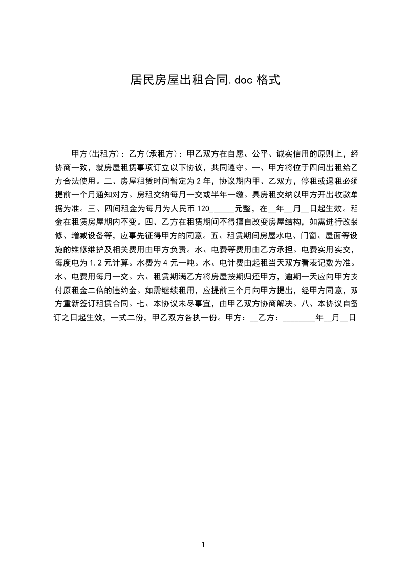 五、违约责任:______________________自合同签订后既产生法律效力,任何一方均不得无故终止协议。如发生违背情况,违约方应支付给守约方违约金____________元,并按实结算房租。