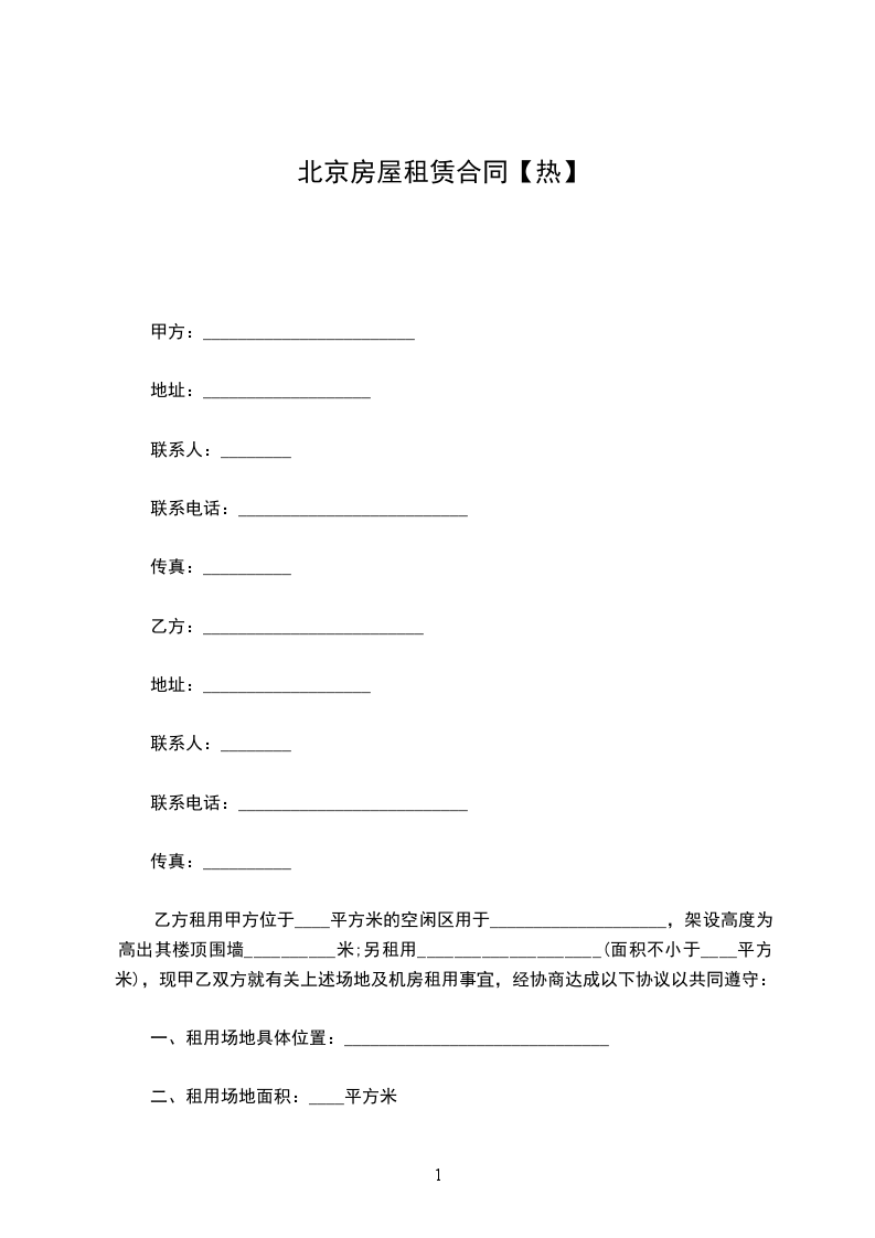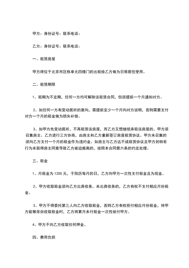 甲方将位于北京市区栋单元四楼门的出租给乙方做为日常居住使用。