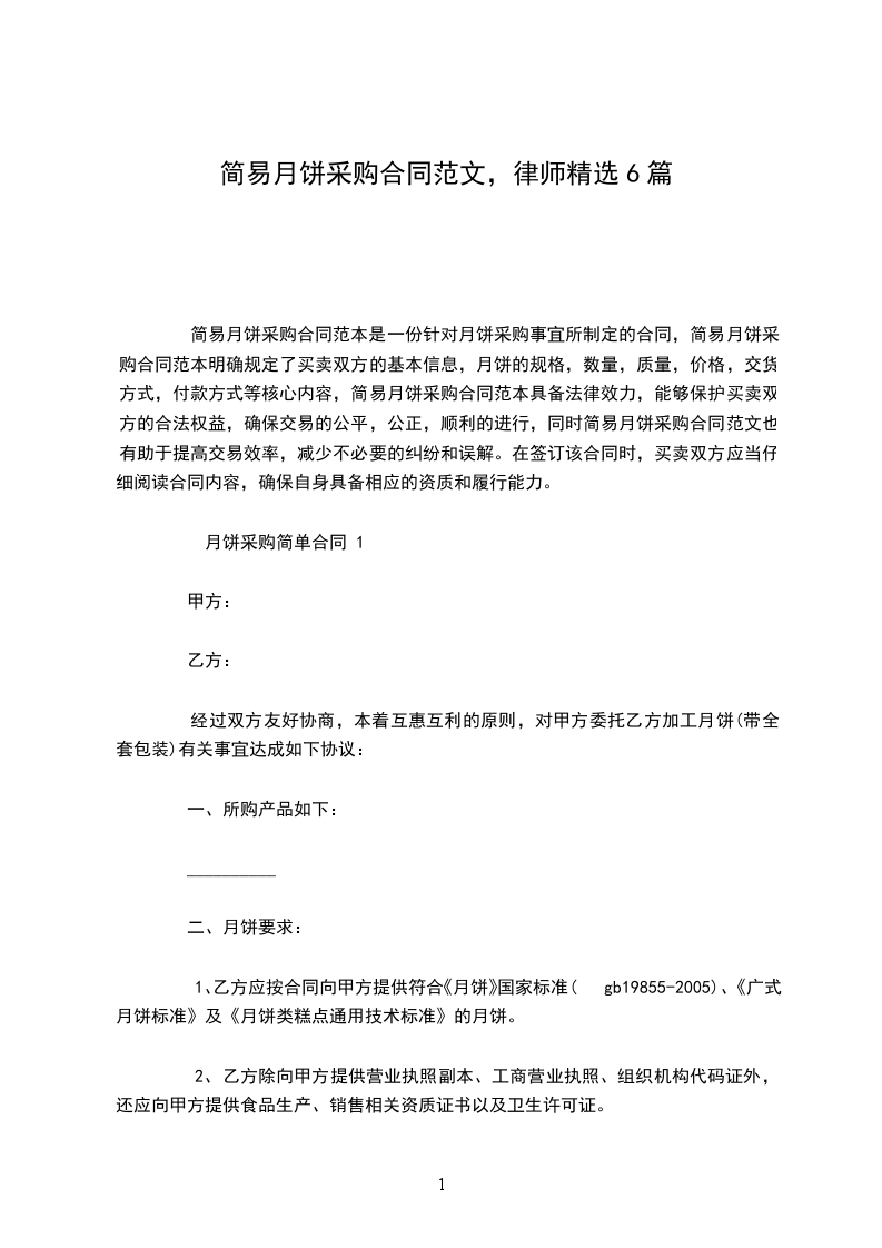 一份简易的月饼采购合同范文,旨在明确月饼采购的相关事宜,保障双方的权益。