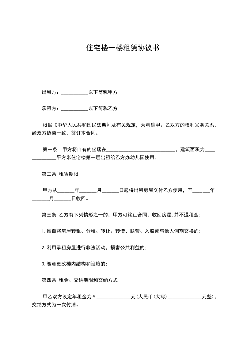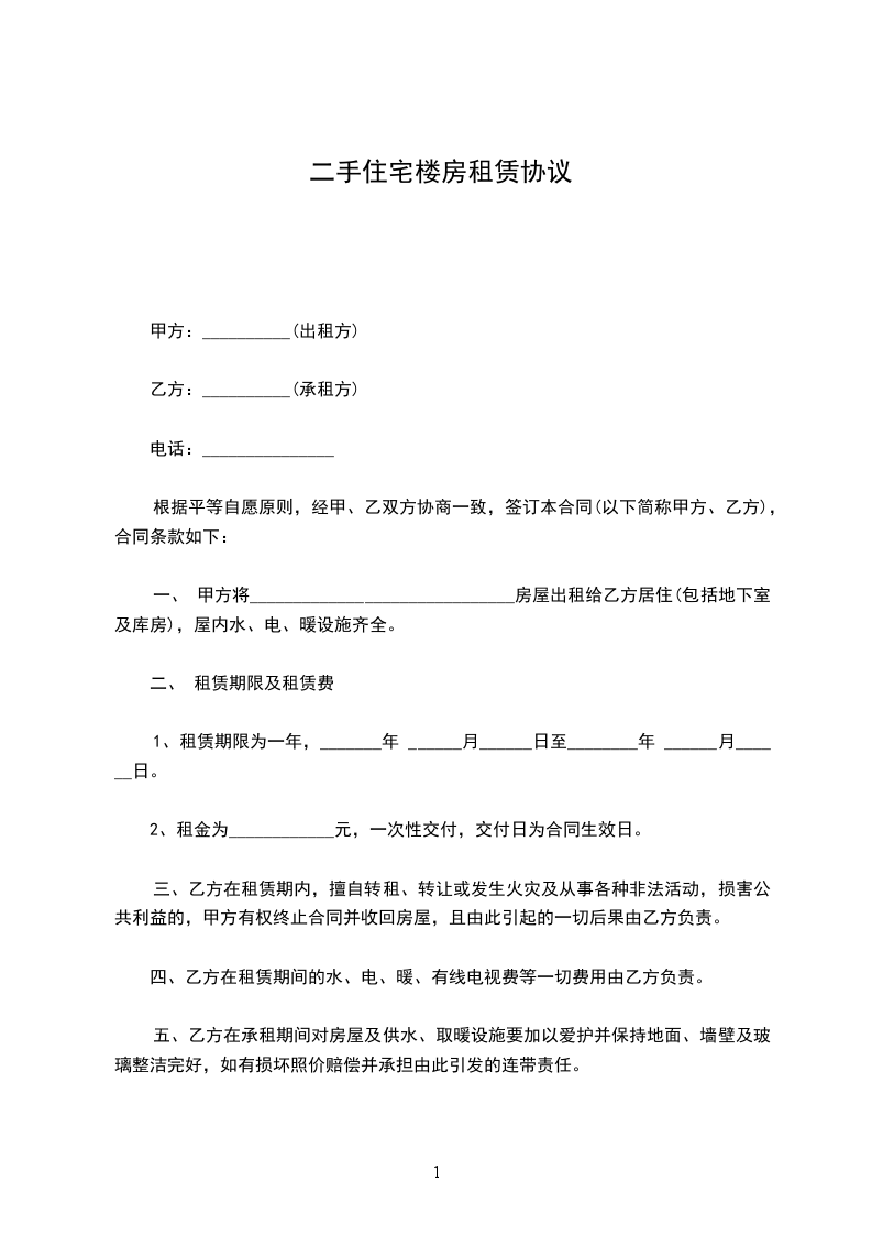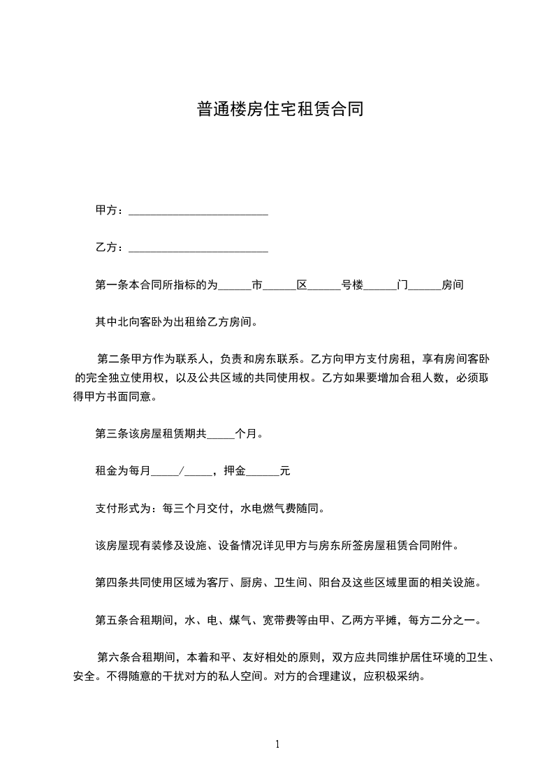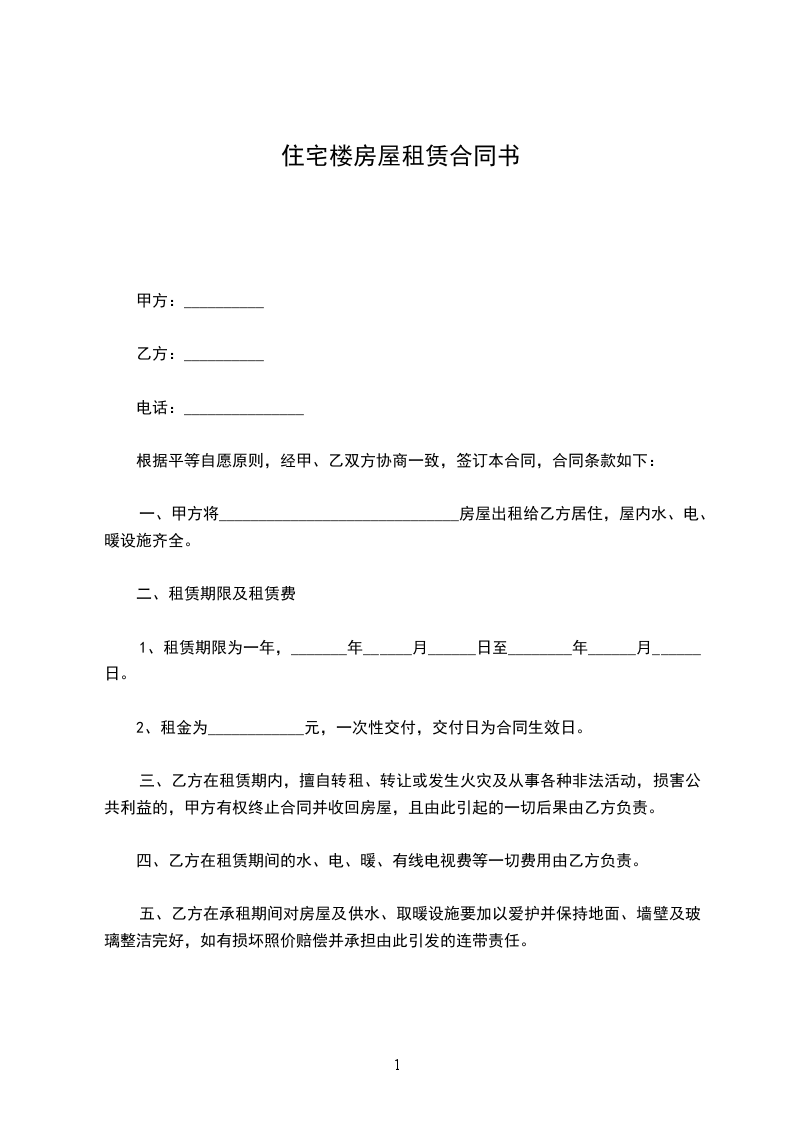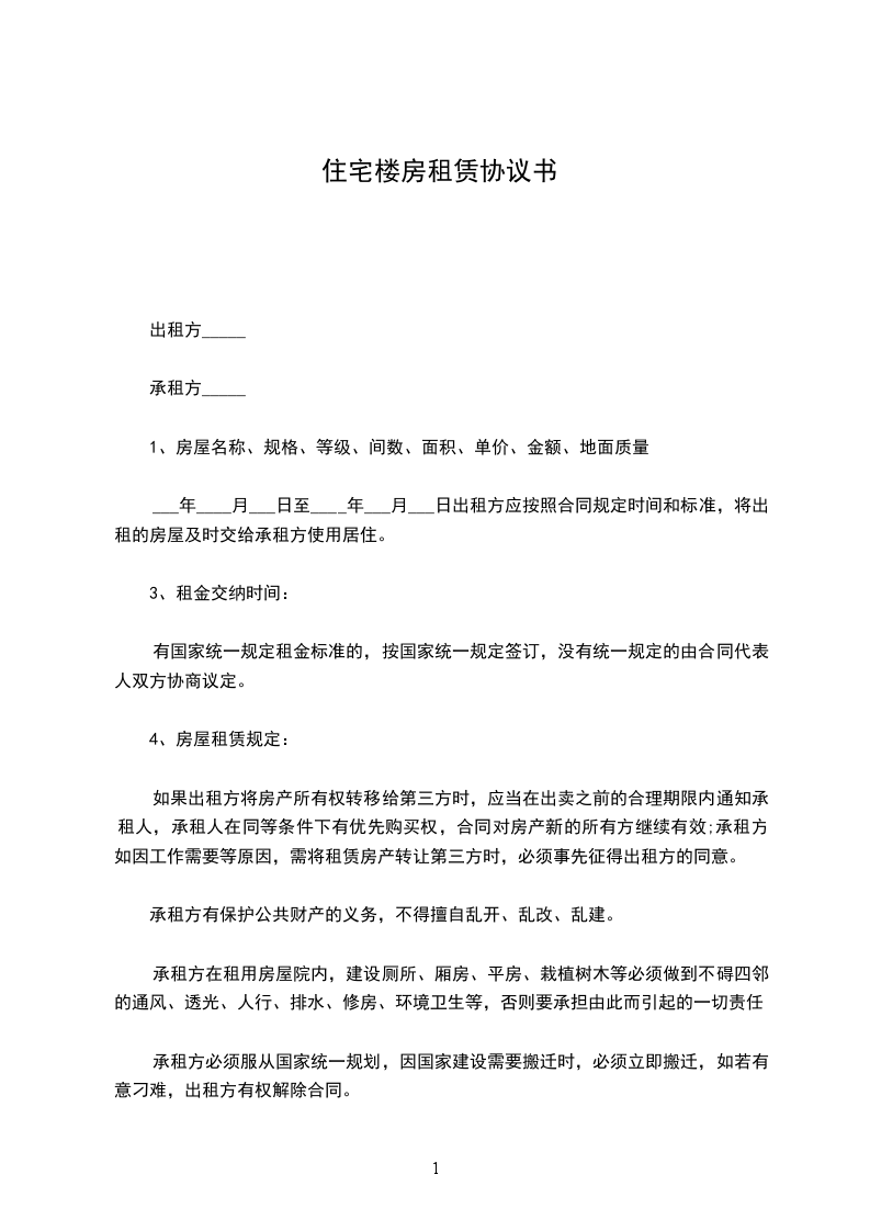 住宅楼房租赁合同书