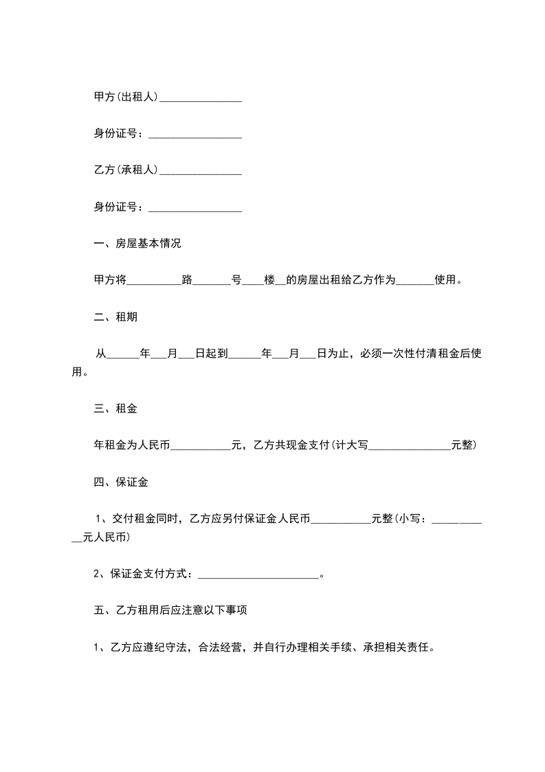 出现问题及时告知出租方,否则一切后果自行负责。