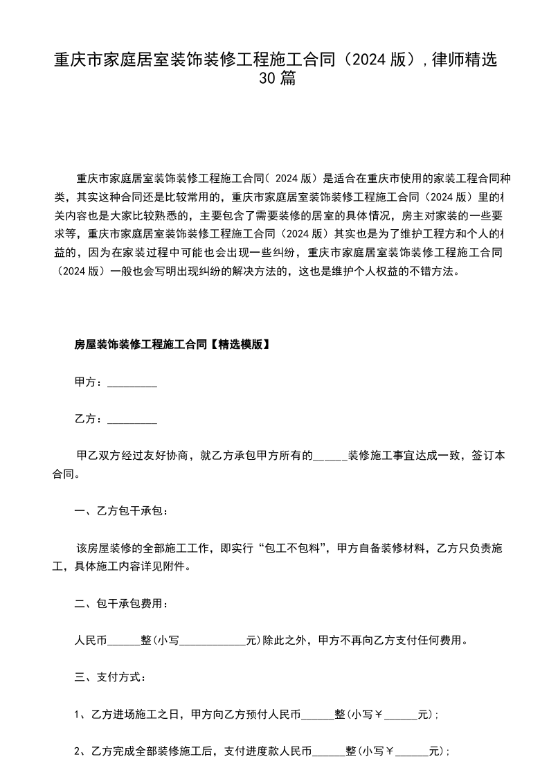 《重庆市家庭居室装饰装修工程施工合同(2024 版)》是重庆市针对家庭居室装饰装修工程所制定的合同范本。它涵盖了从工程概况到竣工验收等各个环节的详细规定,旨在规范装饰装修市场,保障业主和装修公司的合法权益。在 2024 年,该合同版本进一步完善了条款,使其更符合当下市场需求和法律法规要求,为家庭居室装饰装修工程提供了更坚实的法律保障。