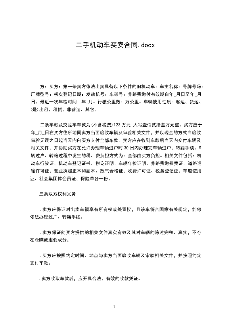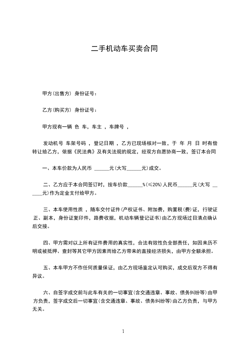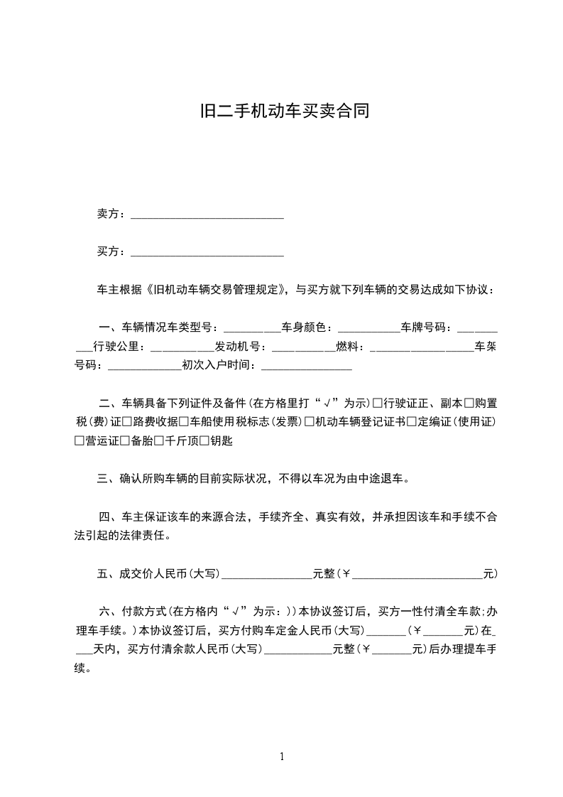 一、本车价款为人民币 ______元(大写______元)成交。