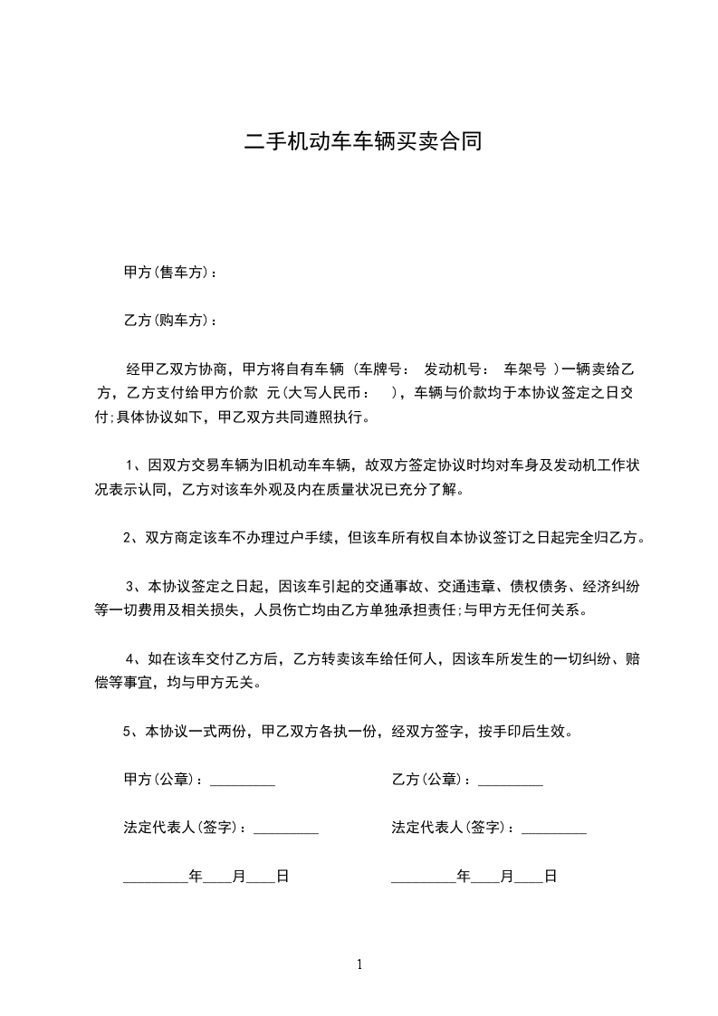 五、本车甲方不作任何质量保证,由乙方现场鉴定认可购买,成交后双方不得有异议。