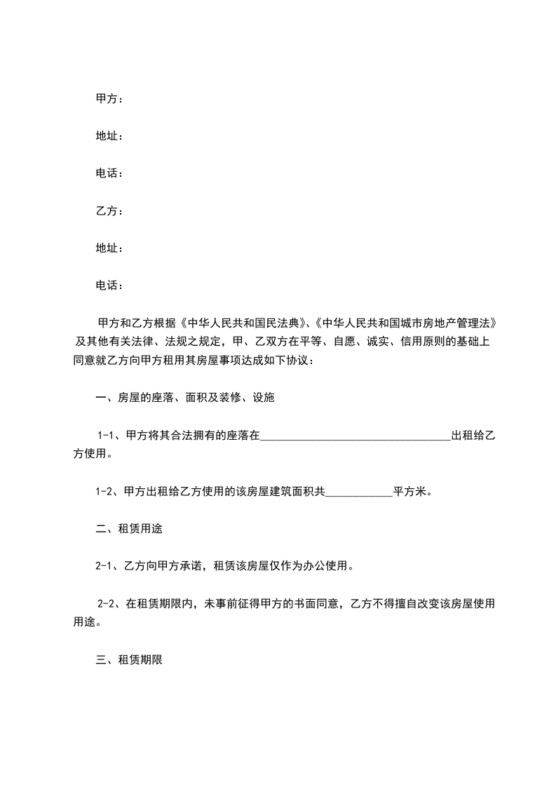 甲方出租的房屋坐______________________________号,建筑面积_______________平方米。