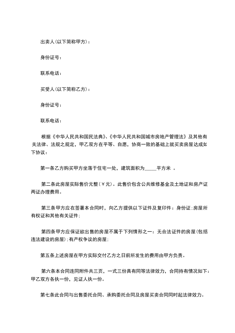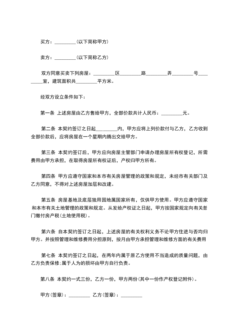 第一条 上述房屋由乙方售给甲方,全部价款共计人民币:_________元。