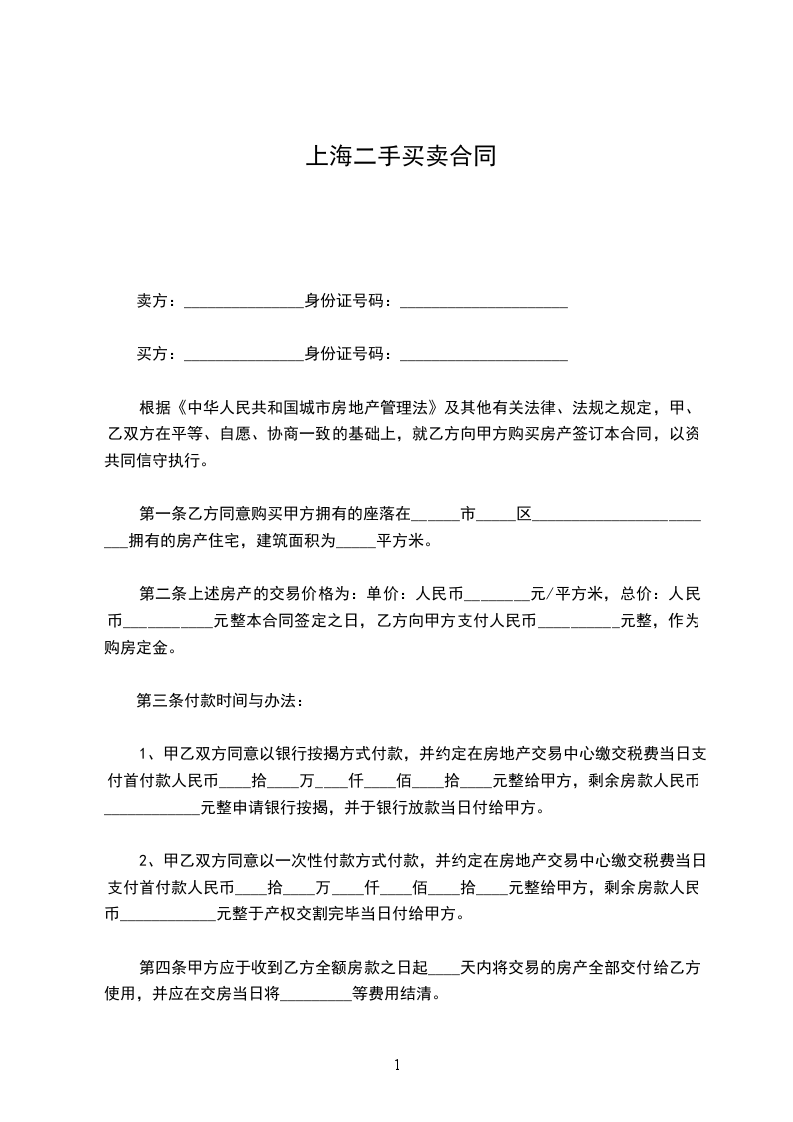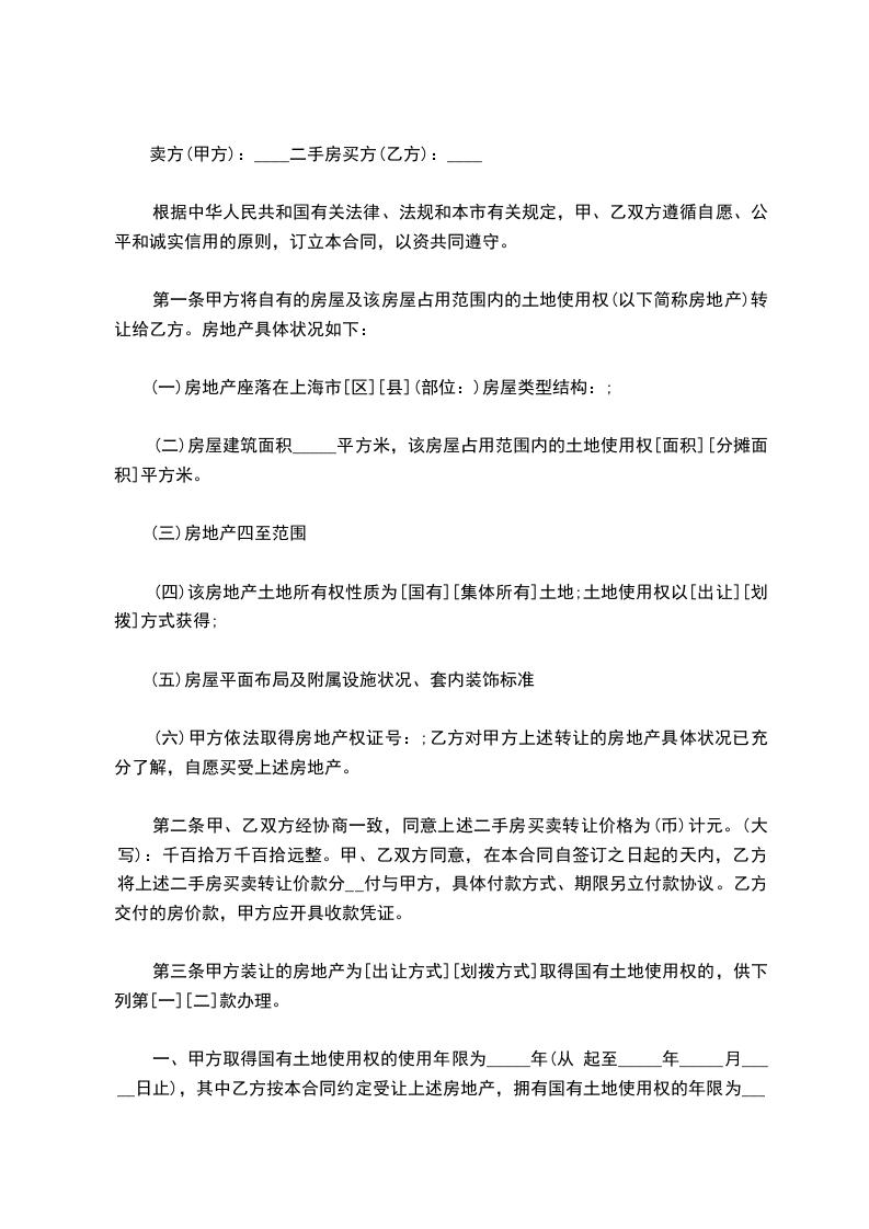 上海二手买卖合同