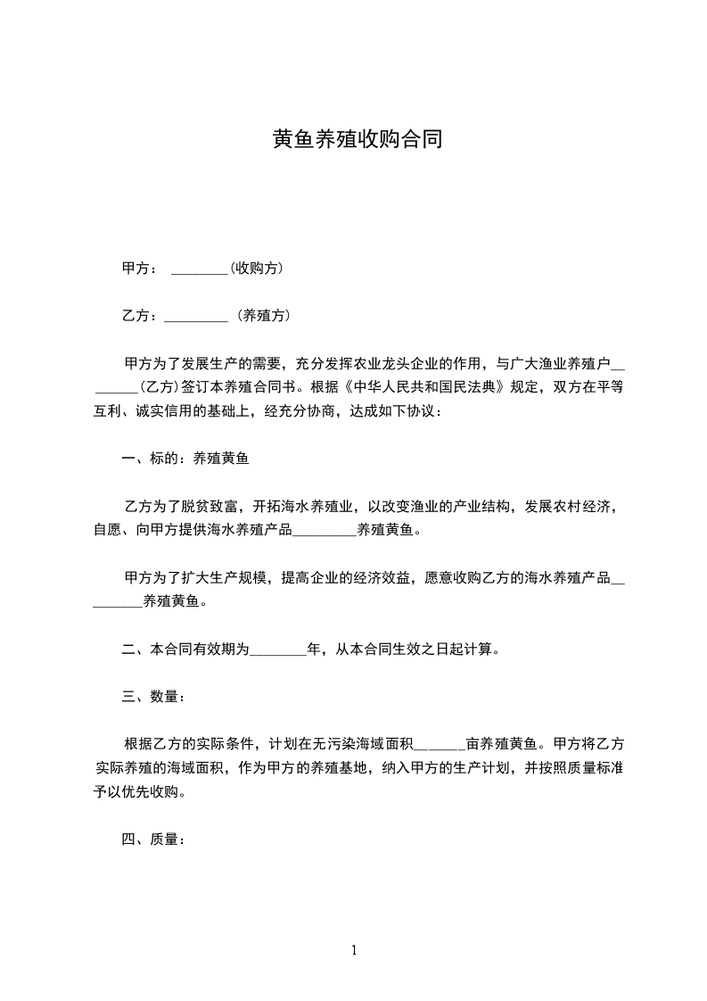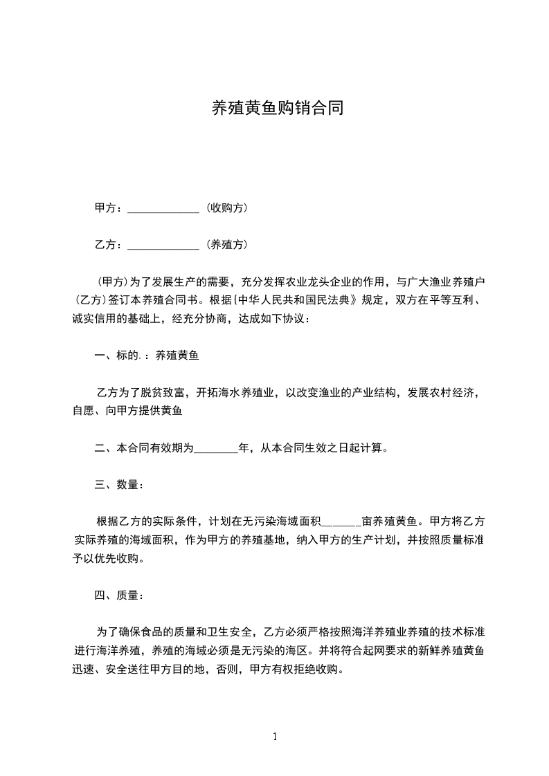 为了确保食品的质量和卫生安全,乙方必须严格按照海洋养殖业养殖的技术标准进行海洋养殖,养殖的海域必须是无污染的海区。并将符合起网要求的新鲜养殖黄鱼迅速、安全送往甲方目的地,否则,甲方有权拒绝收购。