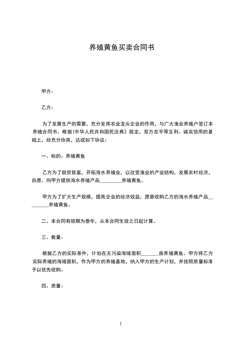 为了发展生产的需要,充分发挥农业龙头企业的作用,与广大渔业养殖户签订本养殖合同书。根据{中华人民共和国民法典》规定,双方在平等互利、诚实信用的基础上,经充分协商,达成如下协议: