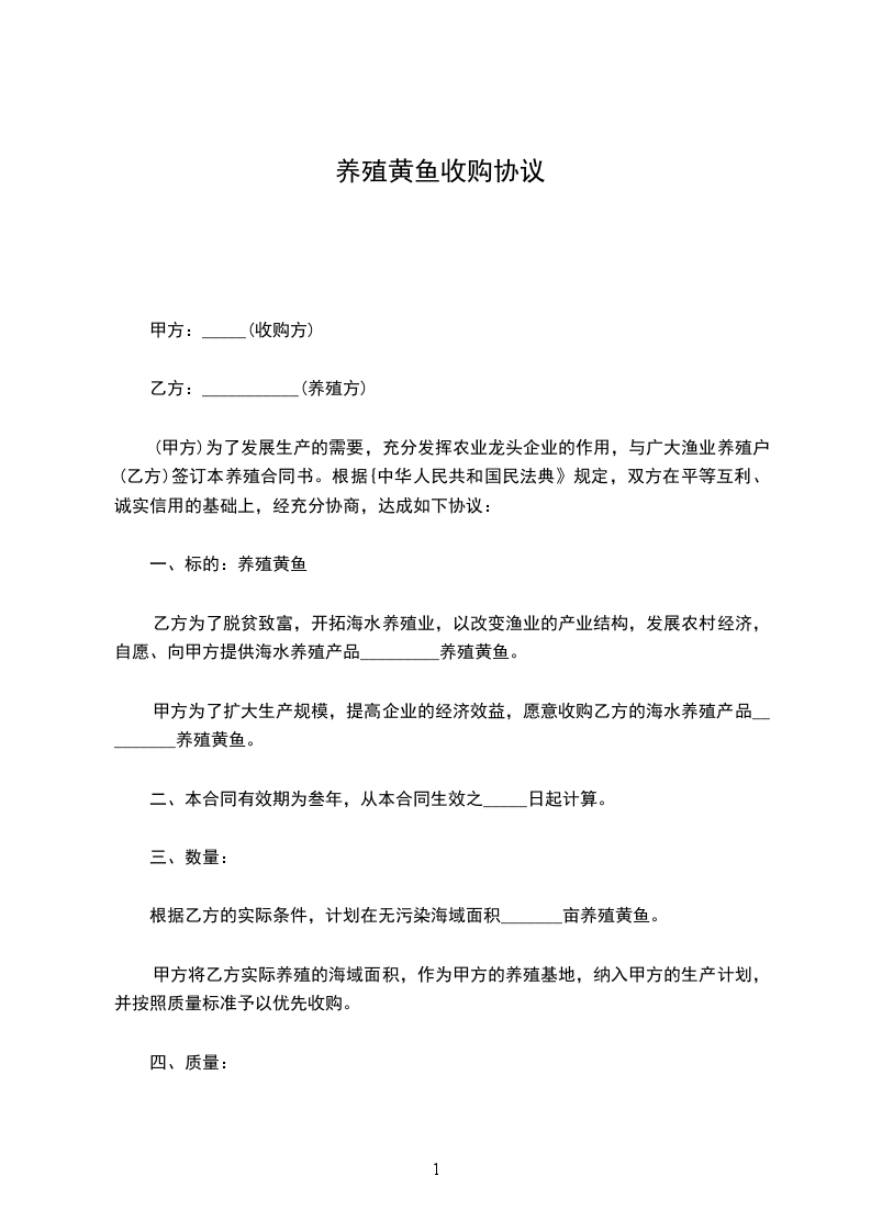 根据乙方的实际条件,计划在无污染海域面积_______亩养殖黄鱼。甲方将乙方实际养殖的海域面积,作为甲方的养殖基地,纳入甲方的生产计划,并按照质量标准予以优先收购。