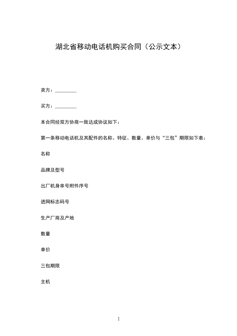 第一条移动电话机及其配件的名称、特征、数量、单价与“三包”期限如下表: