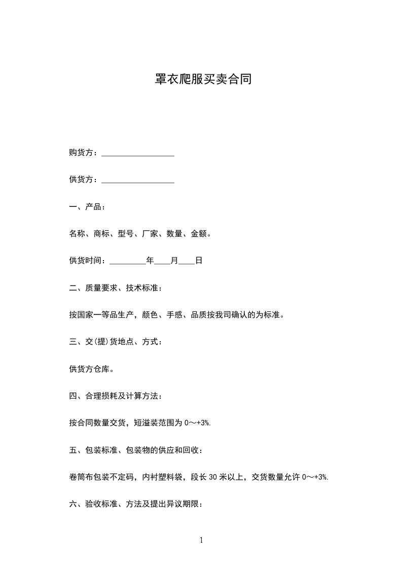 最新服装买卖合同范本最新服装买卖合同范本按乙方指定花色、品种、规格生产的商品,在安排生产后,双方都需严格执行合同。如需变更,由此而产生的损失,乙方负担如甲方不能按期、按质、按量按指定要求履行合同,其损失,甲方负担。