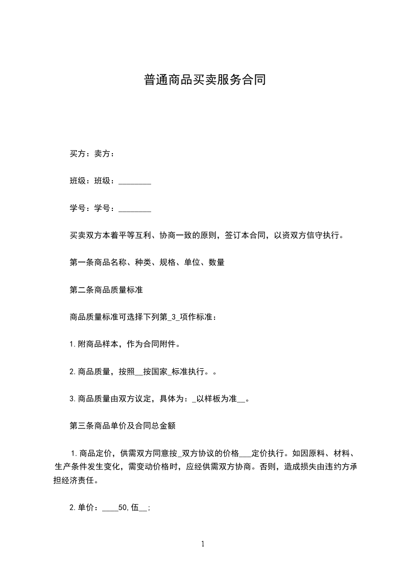 2.商品质量,按照__按国家_标准执行。。