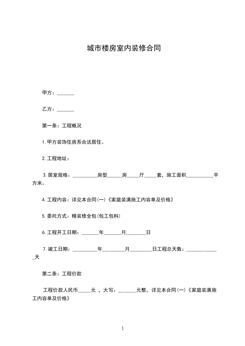 工程项目:居室装潢