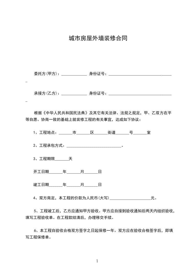 1、开工前乙方应向甲方提供所有施工人员的身份证复印件
