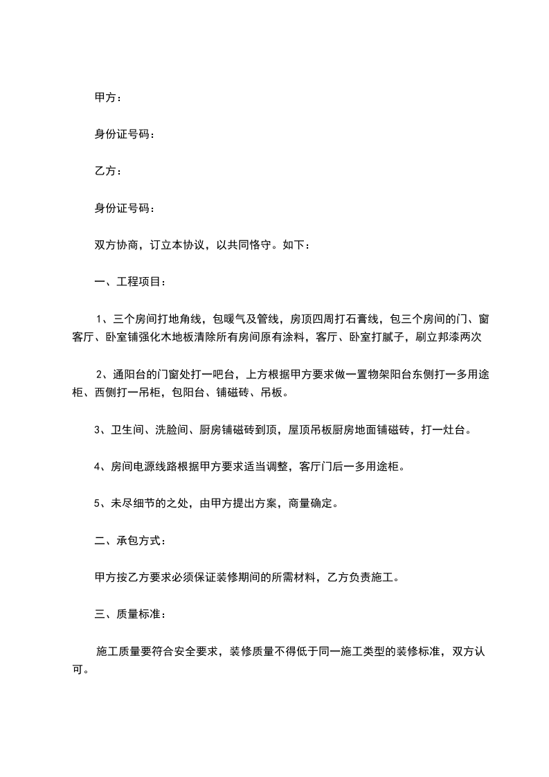 装修项目的具体要求,由甲方提出,乙方实施。本协议未尽事宜,由双方协商解决。本协议自双方签字之日起生效。
