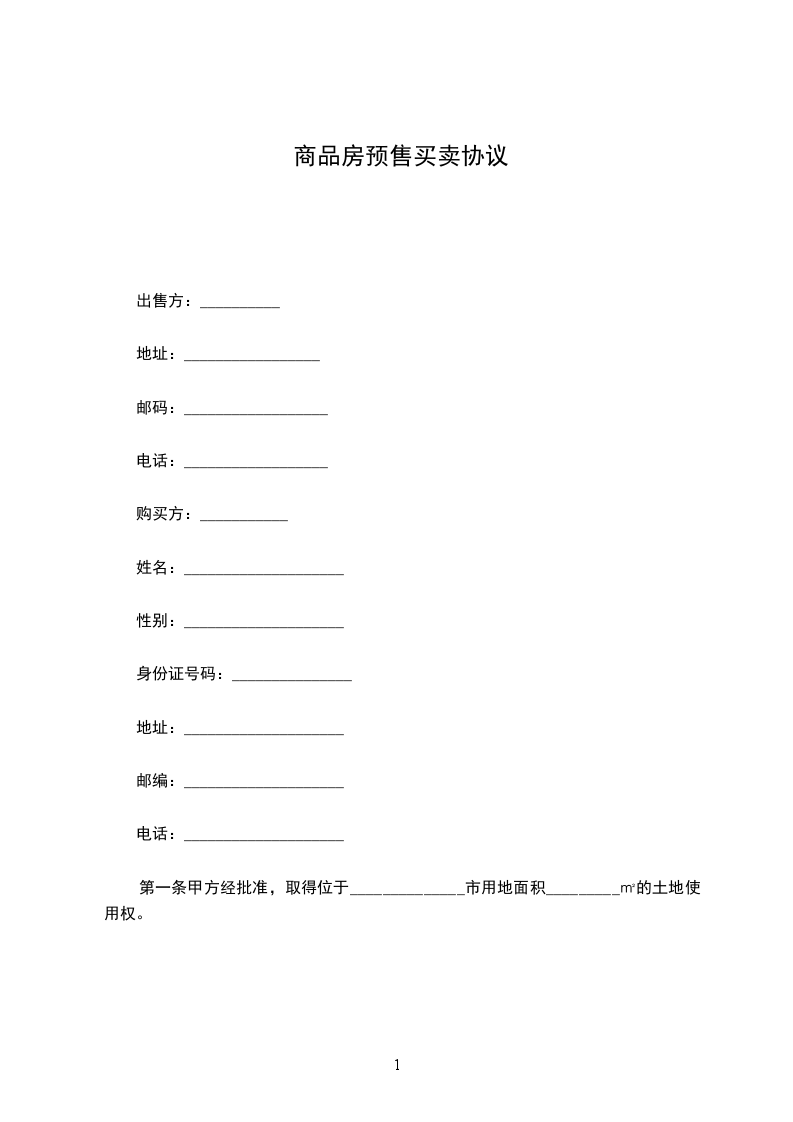 第一条甲方经批准,取得位于______________市用地面积_________㎡的土地使用权。