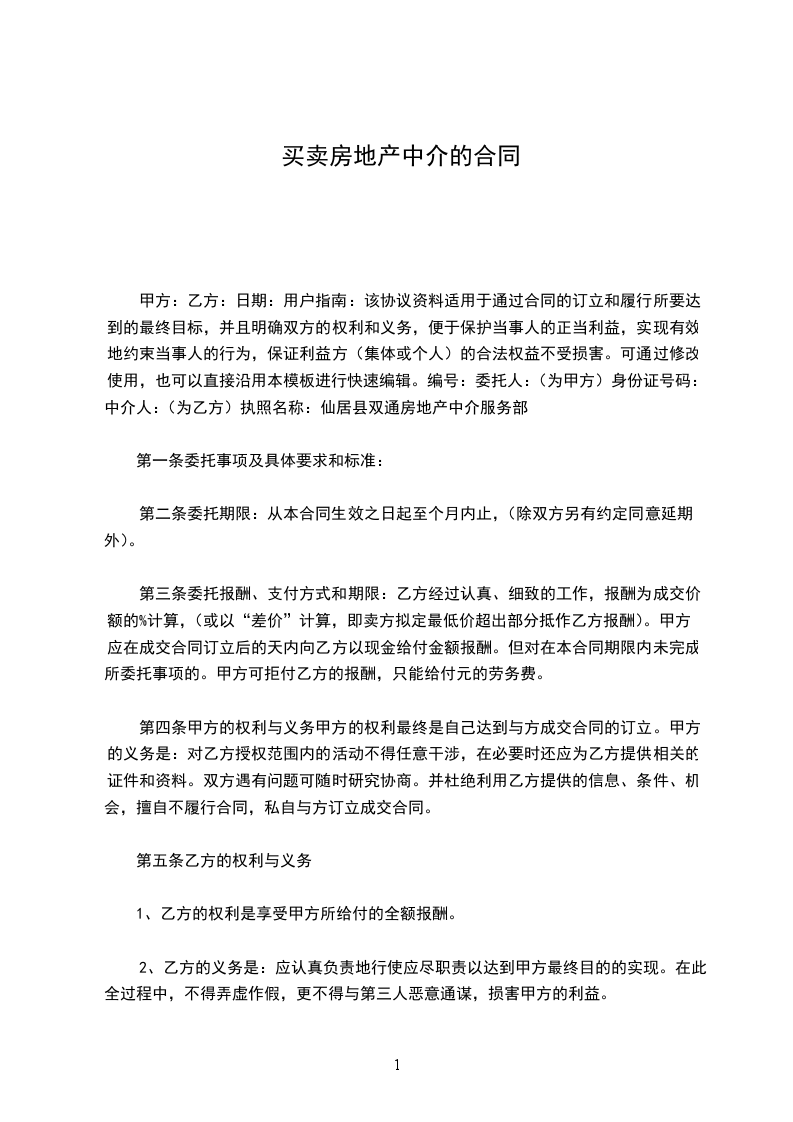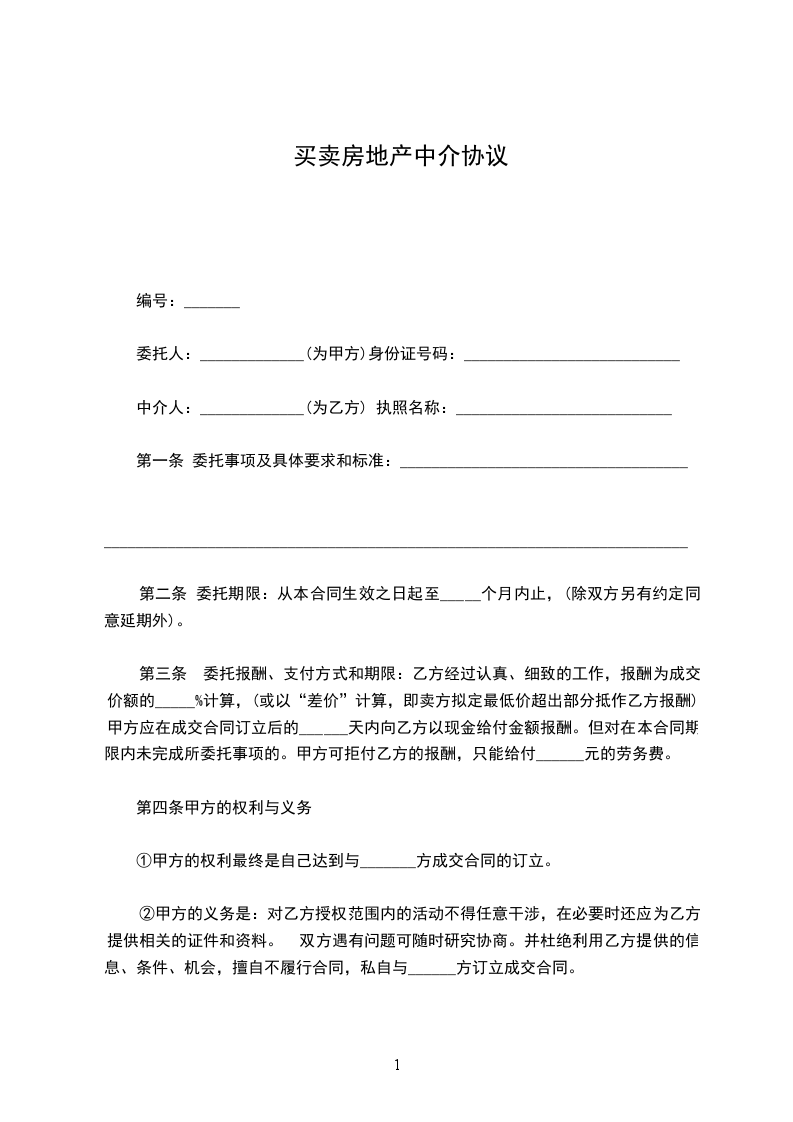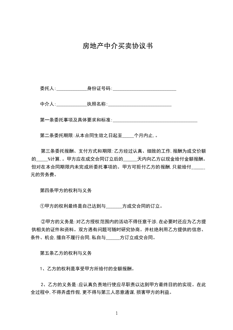 中介人:_____________执照名称:___________________________