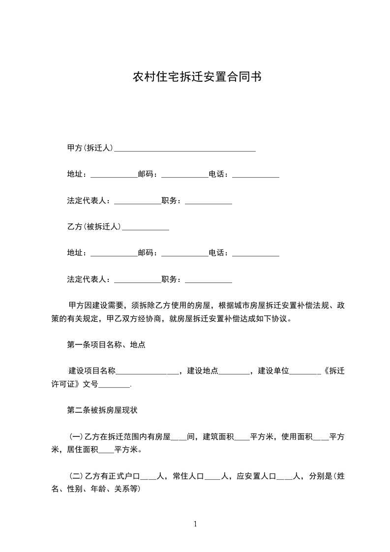 甲方拆迁安置房屋座落在_____________________________,安置房屋面积为______平方米,房屋用途为住宅。