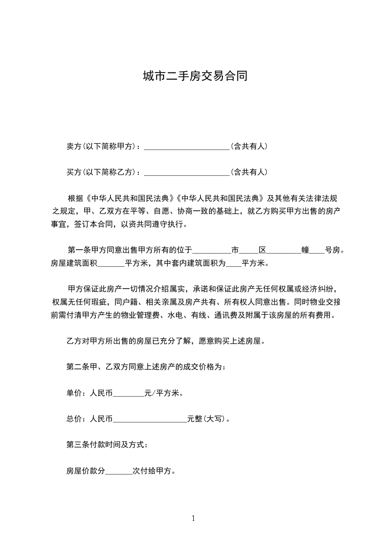 房屋售价:_____________