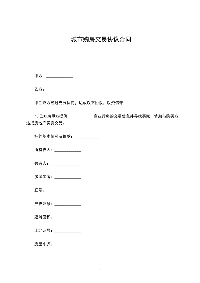 1.乙方为甲方提供_____________商业裙房的交易信息并寻找买家,协助与购买方达成房地产买卖交易。
