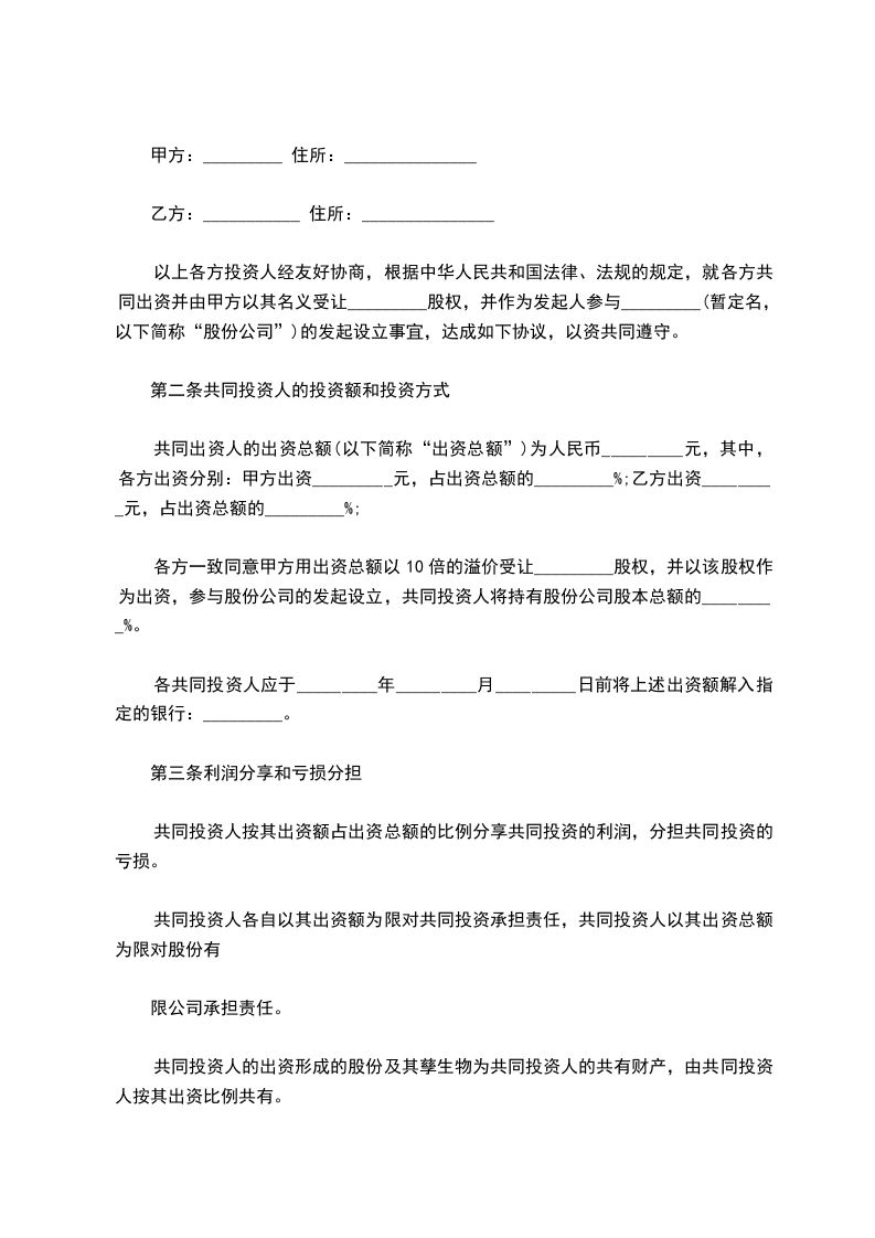 1. 甲方拟向乙方投资人民币[X]元(大写:________________元整)。